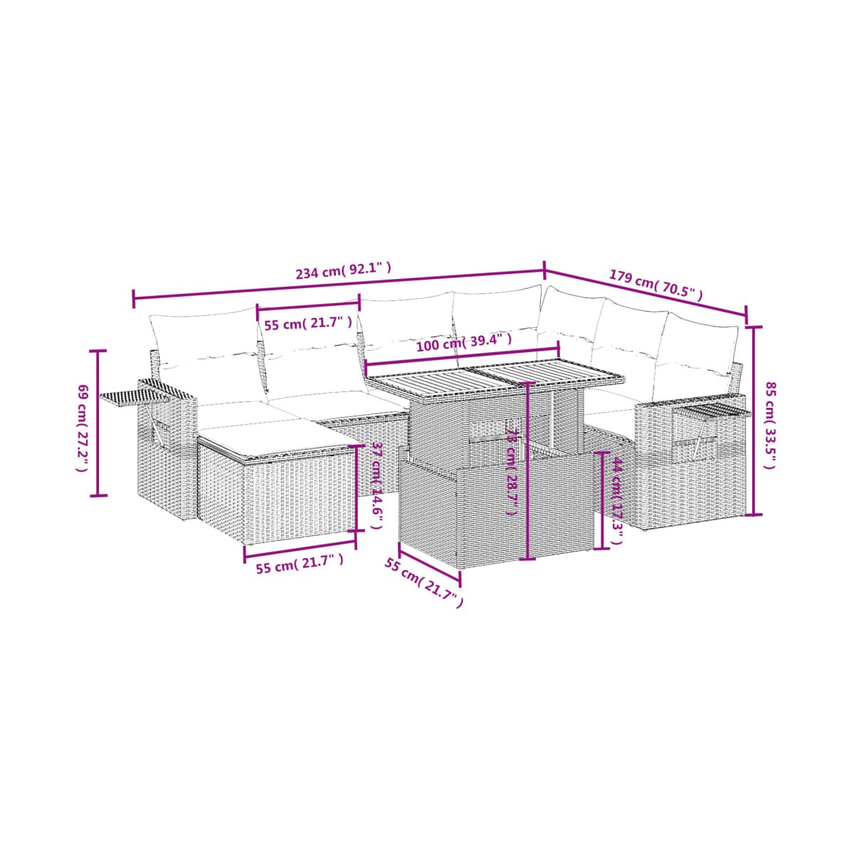 Este conjunto de sofás de jardín es el complemento perfecto para el jardín, terraza o patio, ya que proporciona un espacio confortable y acogedor para charlar con familiares y amigos o simplemente relajarte y disfrutar del aire libre. Material duradero: El ratán PE, también conocido como ratán sintético, es un material sintético resistente y de bajo mantenimiento que se parece al ratán natural. Es ligero, fácil de limpiar y se usa comúnmente para muebles de exterior debido a su durabilidad y propiedades resistentes a la intemperie.Tablero ajustable: El tablero de la mesa se puede levantar para que la mesa sea más alta, lo que transforma la mesa de jardín de una mesa de centro a una mesa de comedor. Es perfecta para invitar a invitados o comer al aire libre.Cómoda mesa auxiliar: Este mueble de exterior cuenta con una mesa auxiliar plegable con un resorte de gas en los reposabrazos, lo que proporciona un lugar conveniente para mantener tus elementos esenciales al alcance de la mano.Funda desenfundable y lavable: Estos cojines de asiento cuentan con fundas desenfundables para facilitar el lavado y mantenimiento.Diseño modular: Este conjunto de muebles de exterior tiene un diseño modular, por lo que es completamente flexible y fácil de mover, para que puedas crear una disposición de muebles de exterior personalizada. Información útil:Para asegurarte de que tus muebles de exterior se mantengan hermosos, recomendamos protegerlos con una funda impermeable.
