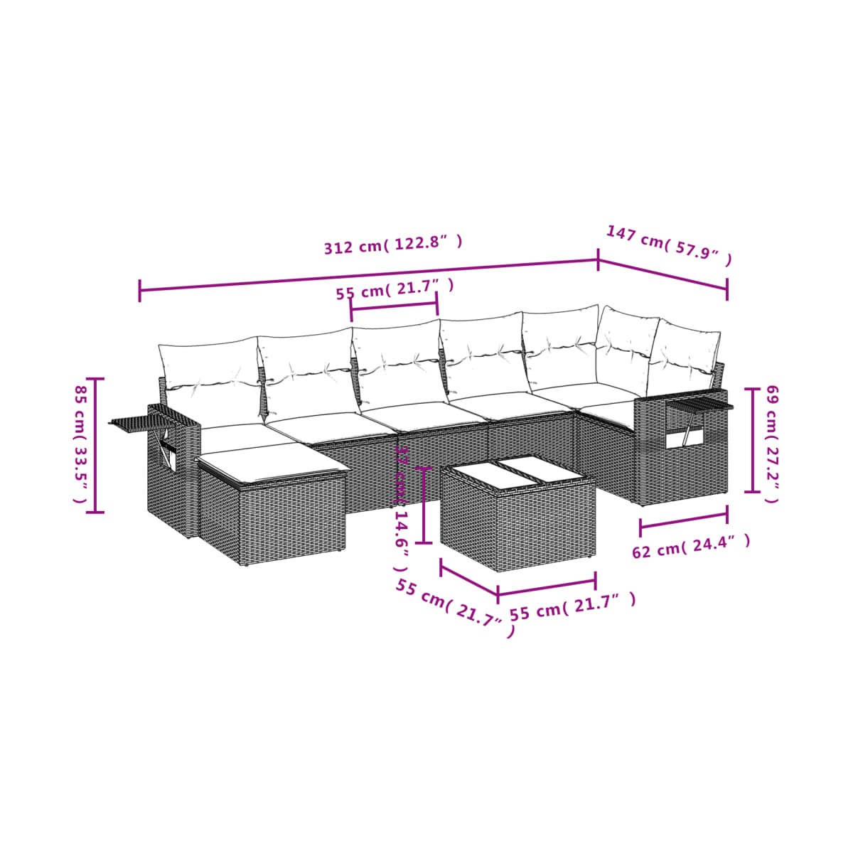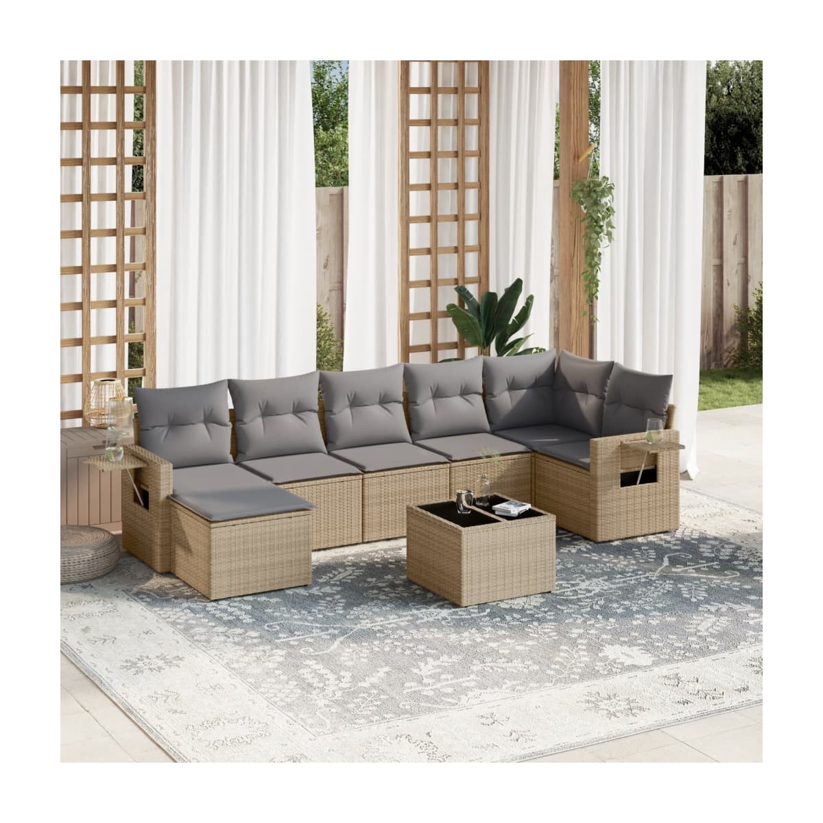 Este conjunto de sofás de jardín es el complemento perfecto para el jardín, terraza o patio, ya que proporciona un espacio confortable y acogedor para charlar con familiares y amigos o simplemente relajarte y disfrutar del aire libre. Material duradero: El ratán PE, también conocido como ratán sintético, es un material sintético resistente y de bajo mantenimiento que se parece al ratán natural. Es ligero, fácil de limpiar y se usa comúnmente para muebles de exterior debido a su durabilidad y propiedades resistentes a la intemperie.Superficie de vidrio: La superficie de la mesa de exterior es de vidrio templado resistente y duradero, por lo que es fácil de limpiar con un paño húmedo y añade un toque de elegancia a tu espacio exterior. Práctica mesa auxiliar: Este mueble de exterior cuenta con una mesa auxiliar plegable con un resorte de gas en los reposabrazos, lo que proporciona un lugar conveniente para mantener tus elementos esenciales al alcance de la mano. Experiencia de asiento cómoda: Estos muebles de exterior, completos con cojines acolchados gruesos, ofrecen una experiencia de asiento cómoda.Diseño modular: Este conjunto de muebles de exterior tiene un diseño modular, por lo que es completamente flexible y fácil de mover, para que puedas crear una disposición de muebles de exterior personalizada. Información útil:Para asegurarte de que tus muebles de exterior se mantengan hermosos, recomendamos protegerlos con una funda impermeable.