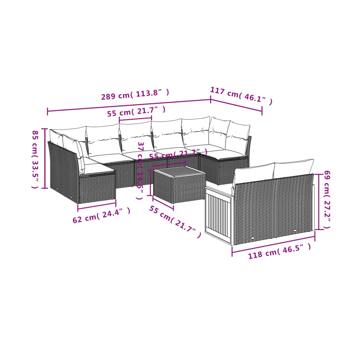 Este conjunto de sofás de jardín es el complemento perfecto para el jardín, terraza o patio, ya que proporciona un espacio confortable y acogedor para charlar con familiares y amigos o simplemente relajarte y disfrutar del aire libre. Material duradero: El ratán PE, también conocido como ratán sintético, es un material sintético resistente y de bajo mantenimiento que se parece al ratán natural. Es ligero, fácil de limpiar y se usa comúnmente para muebles de exterior debido a su durabilidad y propiedades resistentes a la intemperie.Experiencia de asiento cómoda: Estos muebles de exterior, completos con cojines acolchados gruesos, ofrecen una experiencia de asiento cómoda.Superficie estable y fácil de limpiar: Esta mesa de jardín tiene una superficie de madera de acacia que es resistente, duradero y fácil de limpiar con un paño húmedo.Funda desenfundable y lavable: Estos cojines de asiento cuentan con fundas desenfundables para facilitar el lavado y mantenimiento.Diseño modular: Este conjunto de muebles de exterior tiene un diseño modular, por lo que es completamente flexible y fácil de mover, para que puedas crear una disposición de muebles de exterior personalizada. Información útil:Para asegurarte de que tus muebles de exterior se mantengan hermosos, recomendamos protegerlos con una funda impermeable.