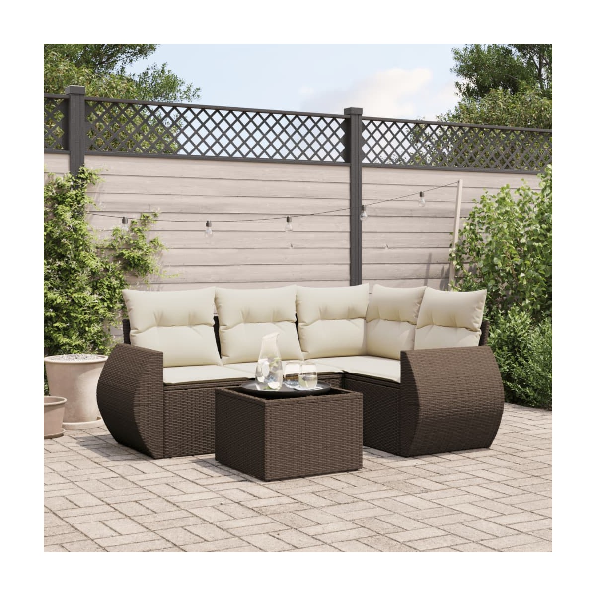 Este conjunto de sofás de jardín es el complemento perfecto para el jardín, terraza o patio, ya que proporciona un espacio confortable y acogedor para charlar con familiares y amigos o simplemente relajarte y disfrutar del aire libre. Material duradero: El ratán PE, también conocido como ratán sintético, es un material sintético resistente y de bajo mantenimiento que se parece al ratán natural. Es ligero, fácil de limpiar y se usa comúnmente para muebles de exterior debido a su durabilidad y propiedades resistentes a la intemperie.Función de almacenaje con bolsa impermeable: Cada asiento de jardín cuenta con espacio de almacenamiento debajo del asiento, completo con una bolsa resistente al agua para guardar cojines, juguetes y otros artículos. Las bolsas interiores tienen una cubierta superior y pueden fijarse firmemente a los asientos con cierres adhesivos para mayor estabilidad.Superficie de vidrio: La superficie de la mesa de exterior es de vidrio templado resistente y duradero, por lo que es fácil de limpiar con un paño húmedo y añade un toque de elegancia a tu espacio exterior.Funda desenfundable y lavable: Estos cojines de asiento cuentan con fundas desenfundables para facilitar el lavado y mantenimiento.Diseño modular: Este conjunto de muebles de exterior tiene un diseño modular, por lo que es completamente flexible y fácil de mover, para que puedas crear una disposición de muebles de exterior personalizada. Información útil:Para asegurarte de que tus muebles de exterior se mantengan hermosos, recomendamos protegerlos con una funda impermeable.