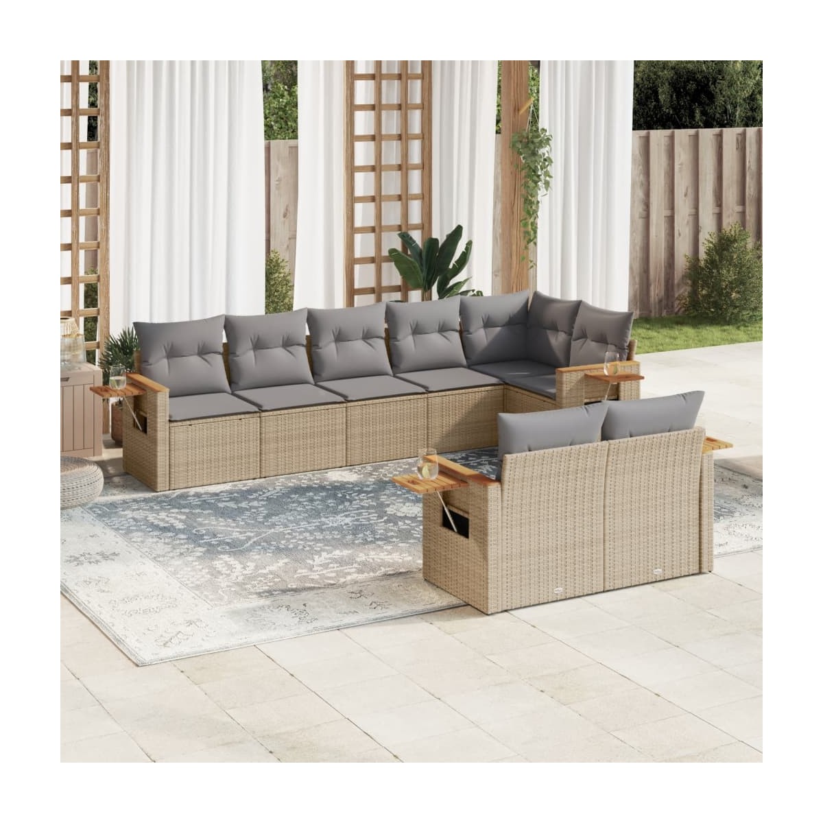 Este conjunto de sofás de jardín es el complemento perfecto para el jardín, terraza o patio, ya que proporciona un espacio confortable y acogedor para charlar con familiares y amigos o simplemente relajarte y disfrutar del aire libre. Material duradero: El ratán PE, también conocido como ratán sintético, es un material sintético resistente y de bajo mantenimiento que se parece al ratán natural. Es ligero, fácil de limpiar y se usa comúnmente para muebles de exterior debido a su durabilidad y propiedades resistentes a la intemperie.Función de almacenamiento con bolsa resistente al agua: El mueble de jardín cuenta con espacio de almacenamiento debajo del asiento, completo con una bolsa resistente al agua para guardar cojines, juguetes y otros artículos. La bolsa interior se puede sujetar de forma segura a los muebles de exterior con cierres de gancho y bucle para mayor estabilidad.Cómoda mesa auxiliar: Este mueble de exterior cuenta con una mesa auxiliar plegable con un resorte de gas en los reposabrazos, lo que proporciona un lugar conveniente para mantener tus elementos esenciales al alcance de la mano.Funda desenfundable y lavable: Estos cojines de asiento cuentan con fundas desenfundables para facilitar el lavado y mantenimiento.Diseño modular: Este conjunto de muebles de exterior tiene un diseño modular, por lo que es completamente flexible y fácil de mover, para que puedas crear una disposición de muebles de exterior personalizada. Información útil:Para asegurarte de que tus muebles de exterior se mantengan hermosos, recomendamos protegerlos con una funda impermeable.