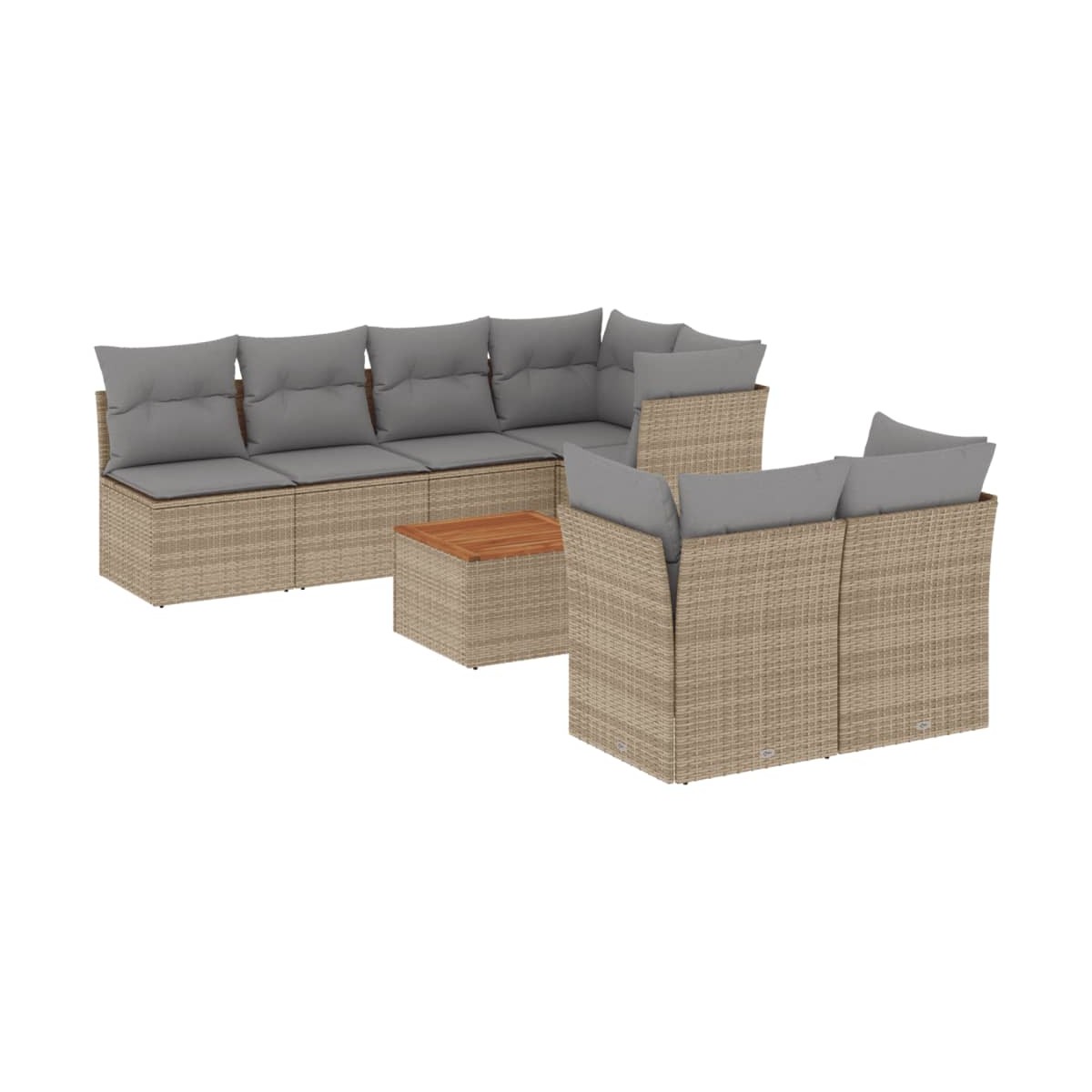 Este conjunto de sofás de jardín es el complemento perfecto para el jardín, terraza o patio, ya que proporciona un espacio confortable y acogedor para charlar con familiares y amigos o simplemente relajarte y disfrutar del aire libre. Material duradero: El ratán PE, también conocido como ratán sintético, es un material sintético resistente y de bajo mantenimiento que se parece al ratán natural. Es ligero, fácil de limpiar y se usa comúnmente para muebles de exterior debido a su durabilidad y propiedades resistentes a la intemperie.Experiencia de asiento cómoda: Estos muebles de exterior, completos con cojines acolchados gruesos, ofrecen una experiencia de asiento cómoda.Superficie estable y fácil de limpiar: Esta mesa de jardín tiene una superficie de madera de acacia que es resistente, duradero y fácil de limpiar con un paño húmedo.Funda desenfundable y lavable: Estos cojines de asiento cuentan con fundas desenfundables para facilitar el lavado y mantenimiento.Diseño modular: Este conjunto de muebles de exterior tiene un diseño modular, por lo que es completamente flexible y fácil de mover, para que puedas crear una disposición de muebles de exterior personalizada. Información útil:Para asegurarte de que tus muebles de exterior se mantengan hermosos, recomendamos protegerlos con una funda impermeable.