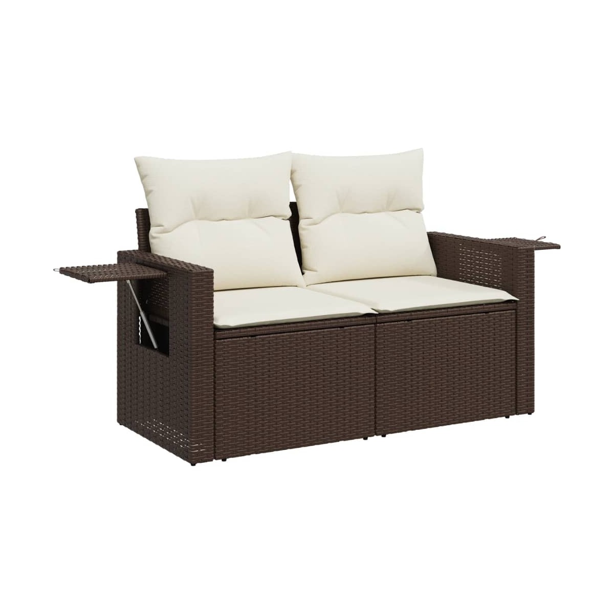 Este conjunto de sofás de jardín es el complemento perfecto para el jardín, terraza o patio, ya que proporciona un espacio confortable y acogedor para charlar con familiares y amigos o simplemente relajarte y disfrutar del aire libre. Material duradero: El ratán PE, también conocido como ratán sintético, es un material sintético resistente y de bajo mantenimiento que se parece al ratán natural. Es ligero, fácil de limpiar y se usa comúnmente para muebles de exterior debido a su durabilidad y propiedades resistentes a la intemperie. Práctica mesa auxiliar: Este mueble de exterior cuenta con una mesa auxiliar plegable con un resorte de gas en los reposabrazos, lo que proporciona un lugar conveniente para mantener tus elementos esenciales al alcance de la mano. Experiencia de asiento cómoda: Estos muebles de exterior, completos con cojines acolchados gruesos, ofrecen una experiencia de asiento cómoda. Funda desenfundable y lavable: Estos cojines de asiento cuentan con fundas desenfundables para facilitar el lavado y mantenimiento.Diseño modular: Este conjunto de muebles de exterior tiene un diseño modular, por lo que es completamente flexible y fácil de mover, para que puedas crear una disposición de muebles de exterior personalizada. Información útil:Para asegurarte de que tus muebles de exterior se mantengan hermosos, recomendamos protegerlos con una funda impermeable.