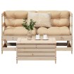 Este conjunto de sofás de jardín es el complemento perfecto para el jardín, terraza o patio, ya que proporciona un espacio confortable y acogedor para charlar con familiares y amigos o simplemente relajarte y disfrutar del aire libre. Material resistente y duradero: La madera maciza de pino es conocida por su resistencia y durabilidad. Sus vetas rectas y nudos característicos contribuyen a su encanto rústico. Se ha impregnado con una solución conservante y se ha sometido a un tratamiento en autoclave, lo que ha mejorado su resistencia al deterioro y a la intemperie.Experiencia de asiento cómoda: Estos muebles de exterior, completos con cojines acolchados gruesos, ofrecen una experiencia de asiento cómoda.Buena ventilación y prevención de encharcamientos: El diseño de rejilla favorece un flujo de aire óptimo y evita eficazmente la acumulación de agua, lo que garantiza un asiento seco y cómodo.Diseño modular: Este conjunto de muebles de exterior tiene un diseño modular, por lo que es completamente flexible y fácil de mover, para que puedas crear una disposición de muebles de exterior personalizada. Información útil:Para asegurarte de que tus muebles de exterior se mantengan hermosos, recomendamos protegerlos con una funda impermeable.