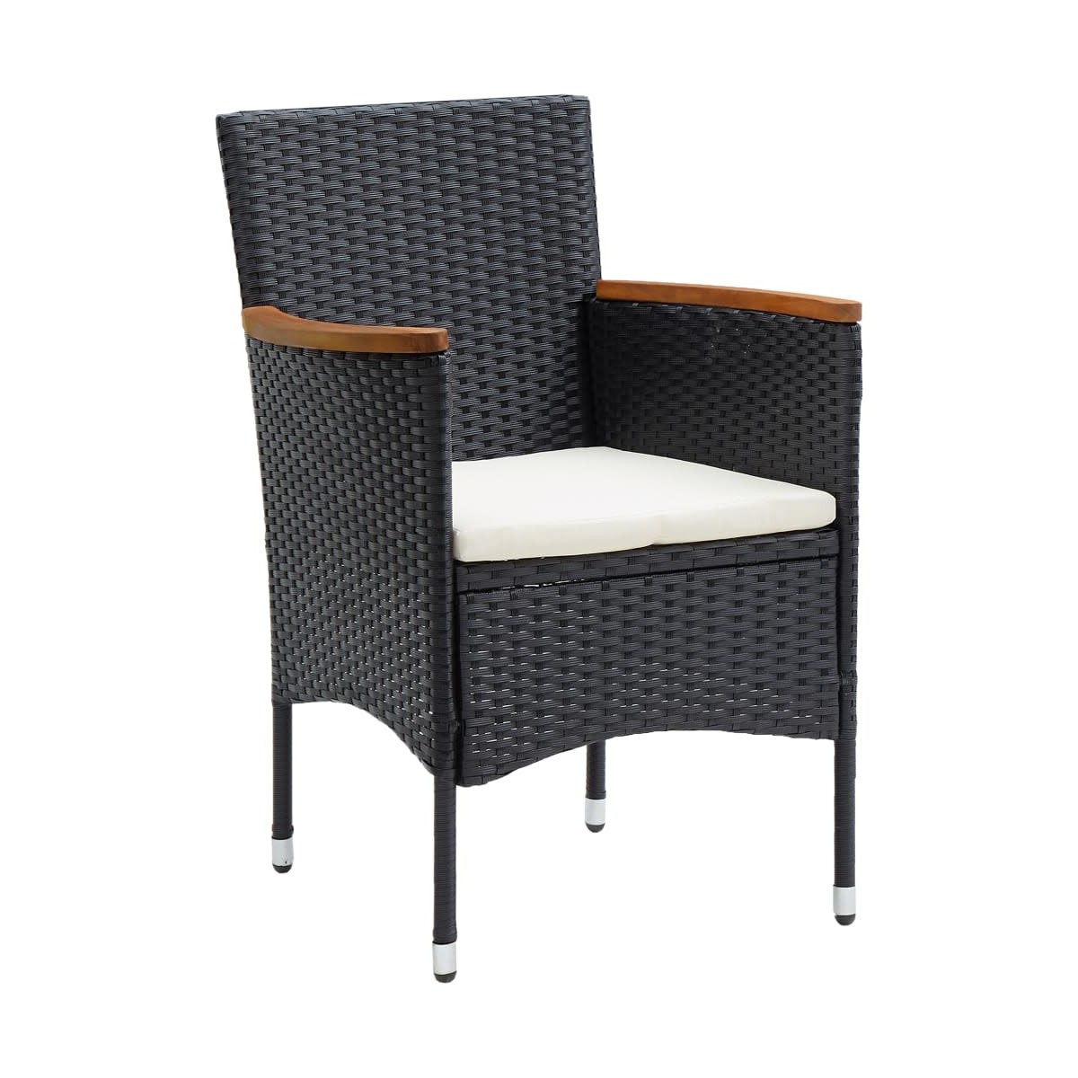 Este juego de comedor de jardín de ratán sintético, con un diseño elegante y contemporáneo, será una excelente opción para cenar o relajarse en el jardín. Material de primera calidad: La madera maciza de acacia es un bonito material natural. La madera de acacia es una madera dura tropical, densa, robusta y duradera.Sillas de alta calidad: Robusta estructura de acero envuelto con ratán PE tejido a mano resistente a la intemperie, estos sillones de jardín son adecuados para uso en exteriores.Diseño cómodo: Diseñadas con respaldo y reposabrazos curvos, estas sillas de ratán brindan la máxima comodidad.Comodidad extra: Los cojines de asiento incluidos ofrecen mayor soporte mientras se estás sentado. Nota:Para prolongar la vida de tus muebles de exterior, te recomendamos que los protejas con una funda impermeable.