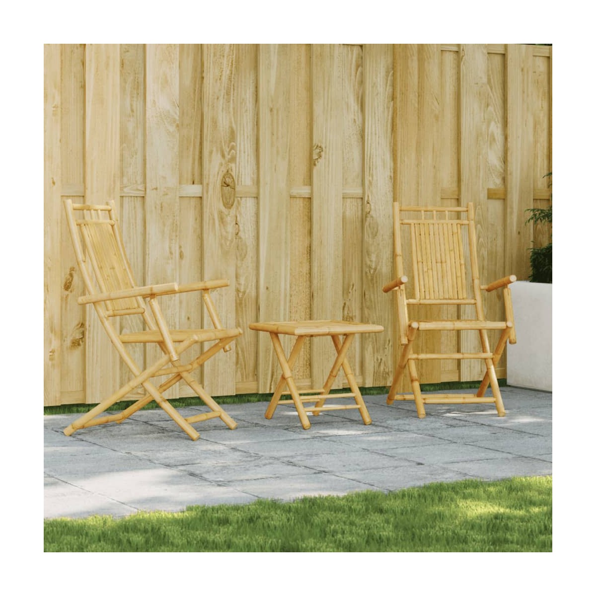¡Disfruta de una taza de café o charla con tu familia y amigos en el jardín, el patio o en el balcón con este juego de bistró! Duradero y resistente: Como material natural, el bambú es transpirable y tiene poco olor. Estas cualidades hacen que el conjunto de bistró de jardín sea duradero y resistente al agua.Diseño plegable: El juego de bistró al aire libre se puede plegar fácilmente cuando no está en uso, para facilitar el almacenamiento y el transporte.Superficie estable: La superficie estable de la mesa de jardín es ideal para colocar la bebida o cualquier otra cosa que necesites a mano.Experiencia de asiento cómoda: Con respaldo, la silla de exterior brinda la máxima comodidad. Información útil:Para asegurarte de que tus muebles de exterior se mantengan hermosos, recomendamos protegerlos con una funda impermeable.