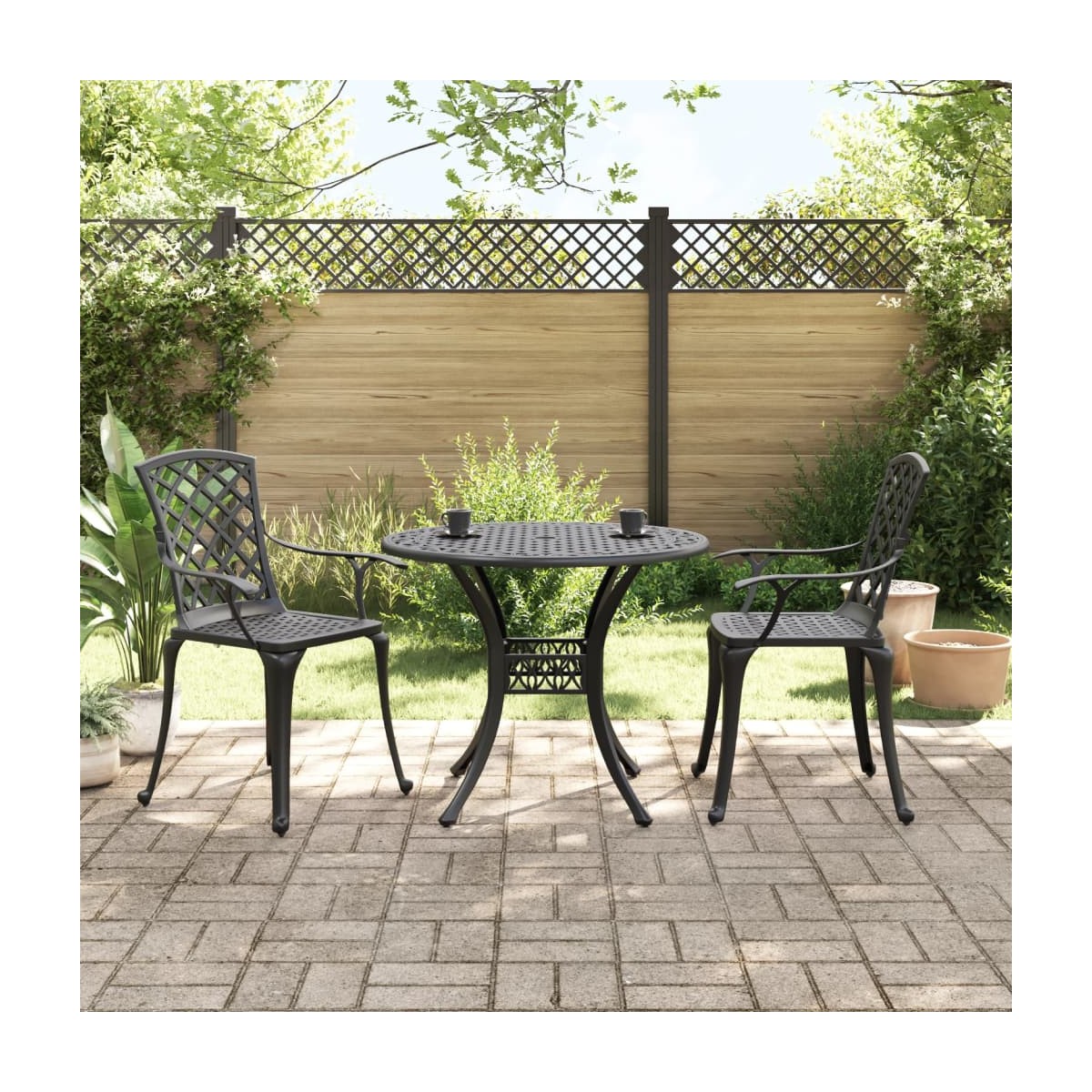 ¡Disfruta de una taza de café o charla con tu familia y amigos en el jardín, el patio o en el balcón con este juego de bistró! Estructura robusta y duradera: El juego de bistró de jardín, hecho de aluminio fundido, es lo suficientemente robusto y duradero como para ofrecer un servicio a largo plazo. El material resistente al óxido y a la intemperie hace que sea ideal para usarse al aire libre durante todo el año.Asiento cómodo: El respaldo alto y el asiento con diseño hueco son cómodos y elegantes. Los reposabrazos curvados ergonómicamente también pueden relajar eficazmente los brazos.Diseño práctico: La mesa de jardín tiene un orificio para sombrilla donde se puede colocar perfectamente una sombrilla para protegerte del sol o la lluvia.Diversos usos: El juego de bistró es perfecto para cualquier porche delantero, patio, césped, jardín, etc. Información útil:Para asegurarte de que tus muebles de exterior se mantengan hermosos, recomendamos protegerlos con una funda impermeable.