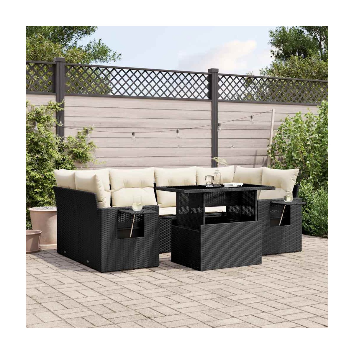 Este conjunto de sofás de jardín es el complemento perfecto para el jardín, terraza o patio, ya que proporciona un espacio confortable y acogedor para charlar con familiares y amigos o simplemente relajarte y disfrutar del aire libre. Material duradero: El ratán PE, también conocido como ratán sintético, es un material sintético resistente y de bajo mantenimiento que se parece al ratán natural. Es ligero, fácil de limpiar y se usa comúnmente para muebles de exterior debido a su durabilidad y propiedades resistentes a la intemperie.Tablero ajustable: El tablero de la mesa se puede levantar para que la mesa sea más alta, lo que transforma la mesa al aire libre de una mesa de café a una mesa de comedor. Es perfecto para invitar a invitados o comer al aire libre.Práctica mesa auxiliar: Este mueble de exterior cuenta con una mesa auxiliar plegable con un resorte de gas en los reposabrazos, lo que proporciona un lugar conveniente para mantener tus elementos esenciales al alcance de la mano. Experiencia de asiento cómoda: Estos muebles de exterior, completos con cojines acolchados gruesos, ofrecen una experiencia de asiento cómoda.Diseño modular: Este conjunto de muebles de exterior tiene un diseño modular, por lo que es completamente flexible y fácil de mover, para que puedas crear una disposición de muebles de exterior personalizada. Información útil:Para asegurarte de que tus muebles de exterior se mantengan hermosos, recomendamos protegerlos con una funda impermeable.