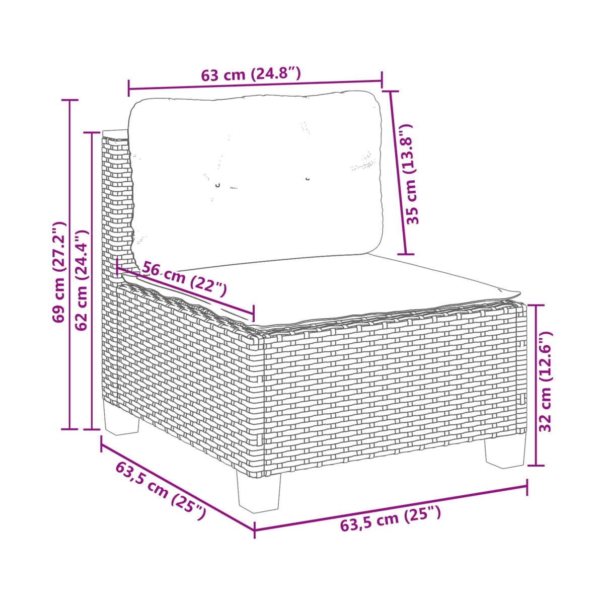 - Dimensiones del cojín del asiento (centro): 63,5 x 56,5 x 3 cm (ancho x profundo x grosor)