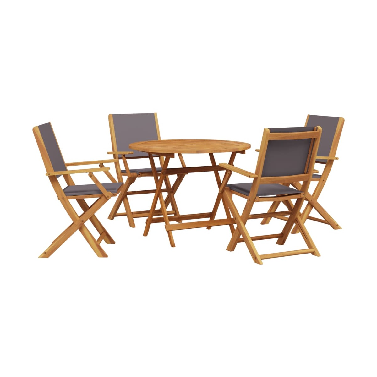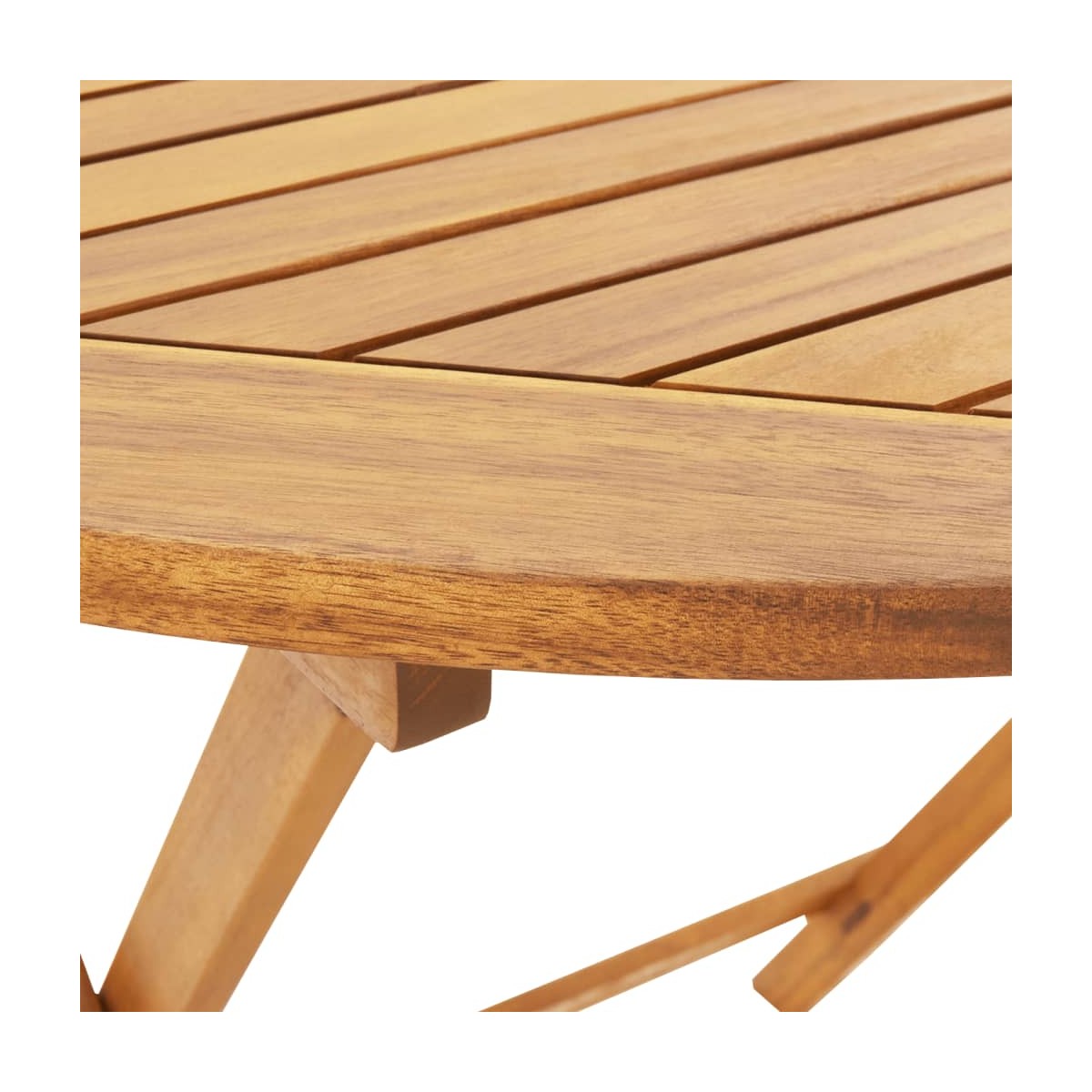 Este juego de comedor de jardín es una gran elección para comer al aire libre o simplemente para relajarte en el jardín, el patio o la terraza. Robusta y estable: La madera maciza de acacia es conocida por su resistencia y durabilidad. Sus diversos colores y patrones de vetas únicos le dan una apariencia atractiva. Con buena estabilidad y resistencia a la intemperie, es ideal para fabricar muebles de interior y exterior.Diseño práctico: El práctico y plano reposabrazos de madera te permite apoyar tus manos en ella mientras disfrutas de tu tiempo al aire libre.Superficie estable: La mesa de exterior ofrece un soporte excelente para bebidas, aperitivos, fruteros y tus adornos favoritos.Diseño plegable: La mesa y las sillas de comedor al aire libre se pueden plegar fácilmente cuando no se utilicen y para facilitar su almacenamiento y transporte. Información útil:Para asegurarte de que tus muebles de exterior se mantengan hermosos, recomendamos protegerlos con una funda impermeable.