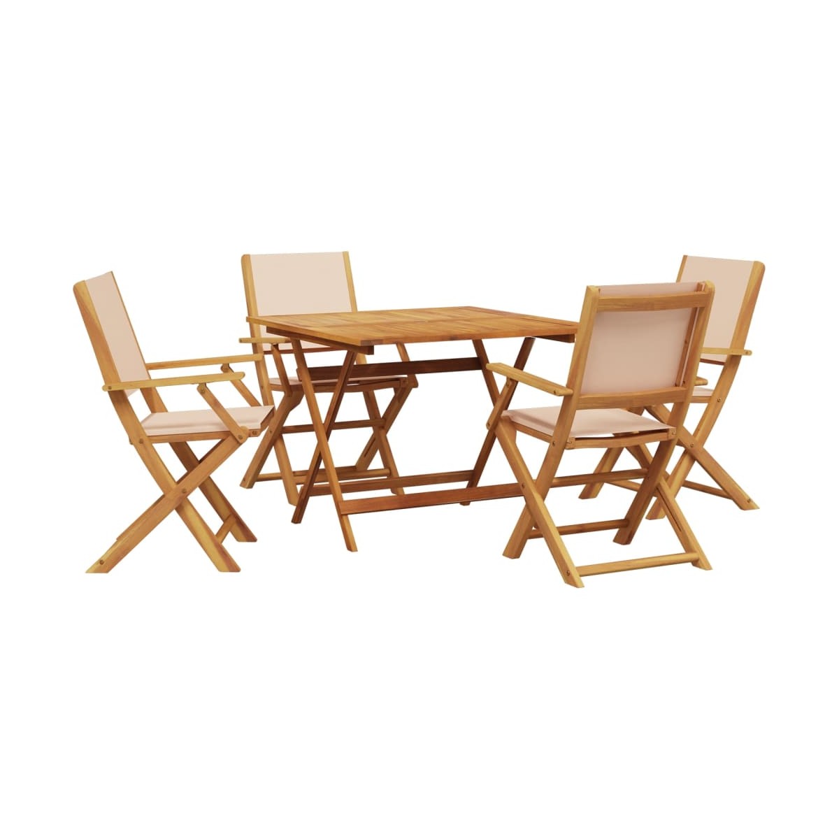 Este juego de comedor de jardín es una gran elección para comer al aire libre o simplemente para relajarte en el jardín, el patio o la terraza. Robusta y estable: La madera maciza de acacia es conocida por su resistencia y durabilidad. Sus diversos colores y patrones de vetas únicos le dan una apariencia atractiva. Con buena estabilidad y resistencia a la intemperie, es ideal para fabricar muebles de interior y exterior.Diseño práctico: El práctico y plano reposabrazos de madera te permite apoyar tus manos en ella mientras disfrutas de tu tiempo al aire libre.Superficie estable: La mesa de exterior ofrece un soporte excelente para bebidas, aperitivos, fruteros y tus adornos favoritos.Diseño plegable: La mesa y las sillas de comedor al aire libre se pueden plegar fácilmente cuando no se utilicen y para facilitar su almacenamiento y transporte. Información útil:Para asegurarte de que tus muebles de exterior se mantengan hermosos, recomendamos protegerlos con una funda impermeable.