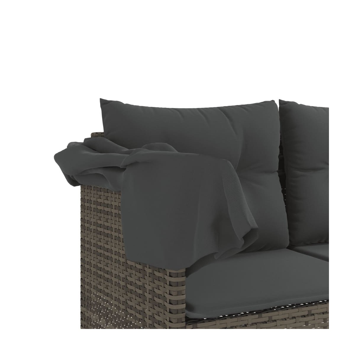 Este conjunto de sofás de jardín es el complemento perfecto para el jardín, terraza o patio, ya que proporciona un espacio confortable y acogedor para charlar con familiares y amigos o simplemente relajarte y disfrutar del aire libre. Material duradero: El ratán PE, también conocido como ratán sintético, es un material sintético resistente y de bajo mantenimiento que se parece al ratán natural. Es ligero, fácil de limpiar y se usa comúnmente para muebles de exterior debido a su durabilidad y propiedades resistentes a la intemperie.Capota retráctil: Gracias al toldo retráctil, podrás crear un ambiente exterior fresco y agradable durante todo el día.Experiencia de asiento cómoda: Estos muebles de exterior, completos con cojines acolchados gruesos, ofrecen una experiencia de asiento cómoda.Reposapiés versátil: El taburete es versátil y sirve como un cómodo reposapiés para cuando descanses en el sofá o como asiento adicional en tu jardín.Funda desenfundable y lavable: Estos cojines de asiento cuentan con fundas desenfundables para facilitar el lavado y mantenimiento. Información útil:Para asegurarte de que tus muebles de exterior se mantengan hermosos, recomendamos protegerlos con una funda impermeable.