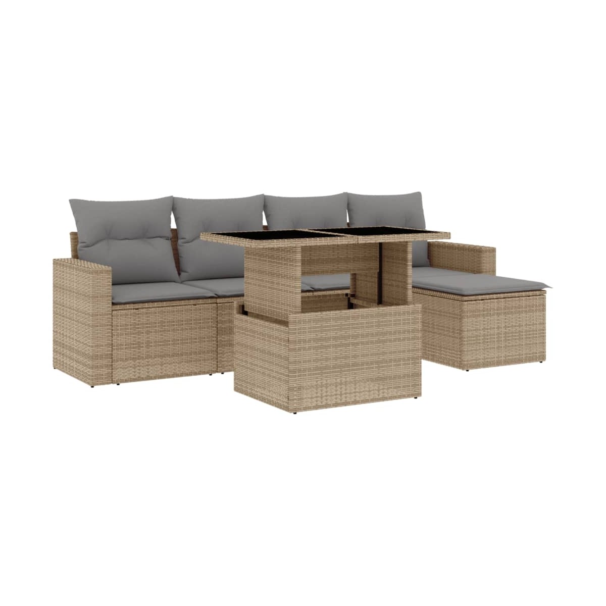 Este conjunto de sofás de jardín es el complemento perfecto para el jardín, terraza o patio, ya que proporciona un espacio confortable y acogedor para charlar con familiares y amigos o simplemente relajarte y disfrutar del aire libre. Material duradero: El ratán PE, también conocido como ratán sintético, es un material sintético resistente y de bajo mantenimiento que se parece al ratán natural. Es ligero, fácil de limpiar y se usa comúnmente para muebles de exterior debido a su durabilidad y propiedades resistentes a la intemperie.Tablero ajustable: El tablero de la mesa se puede levantar para que la mesa sea más alta, lo que transforma la mesa al aire libre de una mesa de café a una mesa de comedor. Es perfecto para invitar a invitados o comer al aire libre.Experiencia de asiento cómoda: Estos muebles de exterior, completos con cojines acolchados gruesos, ofrecen una experiencia de asiento cómoda.Funda desenfundable y lavable: Estos cojines de asiento cuentan con fundas desenfundables para facilitar el lavado y mantenimiento.Diseño modular: Este conjunto de muebles de exterior tiene un diseño modular, por lo que es completamente flexible y fácil de mover, para que puedas crear una disposición de muebles de exterior personalizada. Información útil:Para asegurarte de que tus muebles de exterior se mantengan hermosos, recomendamos protegerlos con una funda impermeable.