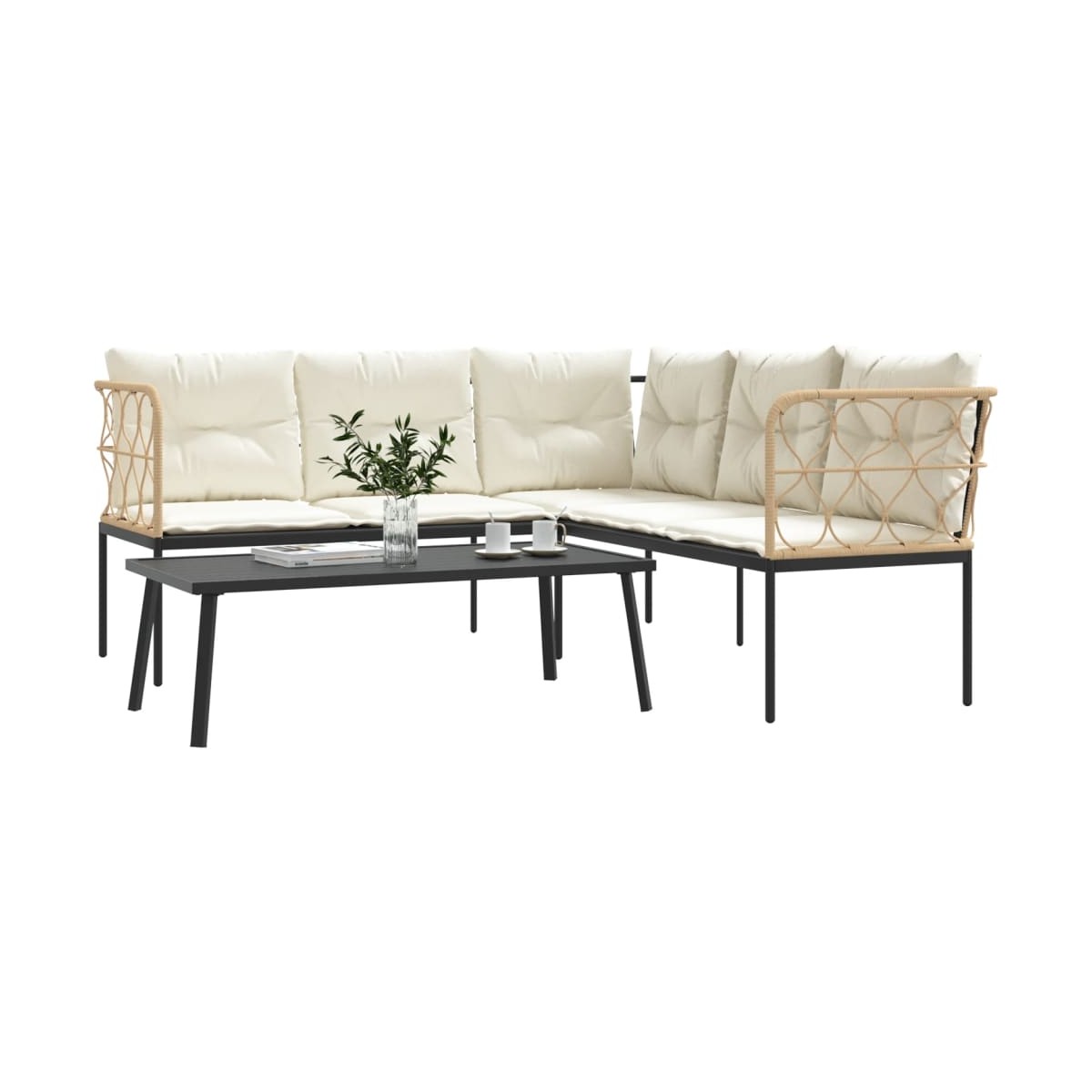 Este conjunto de sofás de jardín es el complemento perfecto para el jardín, terraza o patio, ya que proporciona un espacio confortable y acogedor para charlar con familiares y amigos o simplemente relajarte y disfrutar del aire libre. Estructura robusta y estable: La estructura de acero con recubrimiento en polvo garantiza que el mueble de jardín sea resistente y estable para usarlo a diario al aire libre.Duradero: El tejido textileno es apreciado por su durabilidad, resistencia al agua y a la decoloración, fácil mantenimiento y protección contra los rayos UV y el moho, lo que lo convierte en una opción ideal para muebles de exterior y estructuras de con toldo.Experiencia de asiento cómoda: Estos muebles de exterior, completos con cojines acolchados gruesos, ofrecen una experiencia de asiento cómoda.Funda desenfundable y lavable: Estos cojines de asiento cuentan con fundas desenfundables para facilitar el lavado y mantenimiento.Superficie resistente: La resistente superficie de la mesa de patio es ideal para dejar las bebidas o cualquier otra cosa que necesites tener al alcance de la mano. Información útil:Para asegurarte de que tus muebles de exterior se mantengan hermosos, recomendamos protegerlos con una funda impermeable.