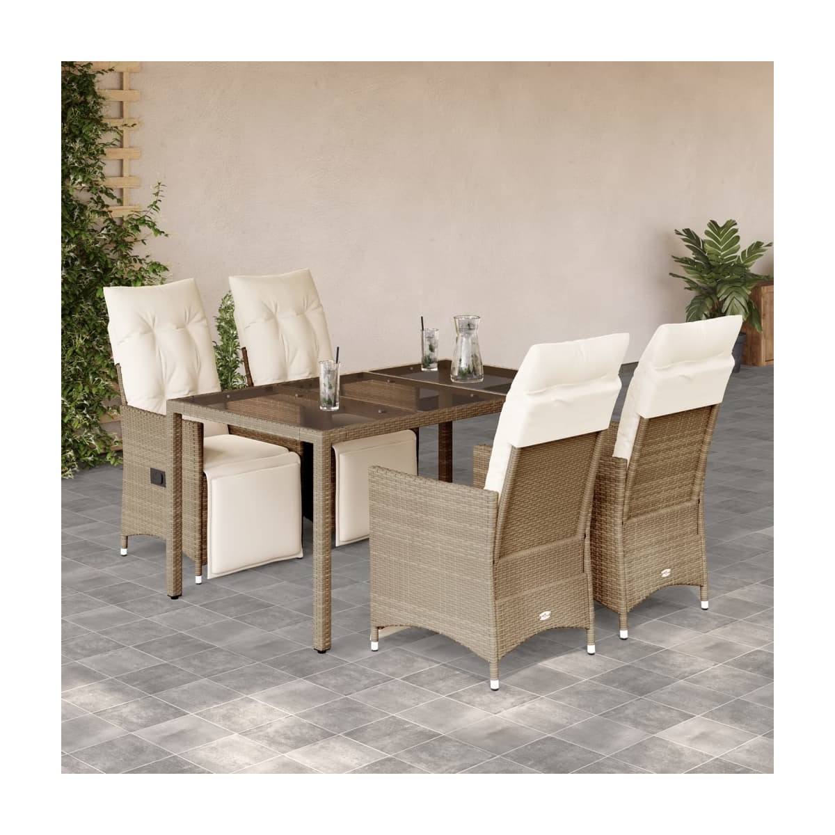 ¡Disfruta de un café o charla con tu familia y amigos en el jardín, patio trasero o balcón con este cómodo juego de bistró! Material duradero: El ratán PE, también conocido como ratán sintético, es un material sintético resistente y de bajo mantenimiento que se parece al ratán natural. Es ligero, fácil de limpiar y se usa comúnmente para muebles de exterior debido a su durabilidad y propiedades resistentes a la intemperie.Respaldo y reposapiés ajustables: este asiento de jardín tiene un asa. Puede ajustar el respaldo y el reposapiés a cualquier posición tirando del asa y devolverlo rápidamente a su posición original.Experiencia de asiento cómoda: Estos muebles de exterior, completos con cojines acolchados gruesos, ofrecen una experiencia de asiento cómoda.Funda desenfundable y lavable: Estos cojines de asiento cuentan con fundas desenfundables para facilitar el lavado y mantenimiento. Los cojines del respaldo tienen una solapa en la parte posterior para facilitar la fijación a los respaldos.Superficie de vidrio: La superficie de la mesa de exterior es de vidrio templado resistente y duradero, por lo que es fácil de limpiar con un paño húmedo y añade un toque de elegancia a tu espacio exterior. Información útil:Para asegurarte de que tus muebles de exterior se mantengan hermosos, recomendamos protegerlos con una funda impermeable.