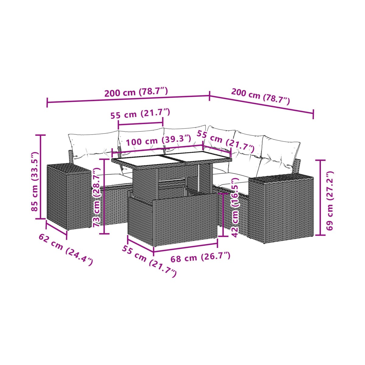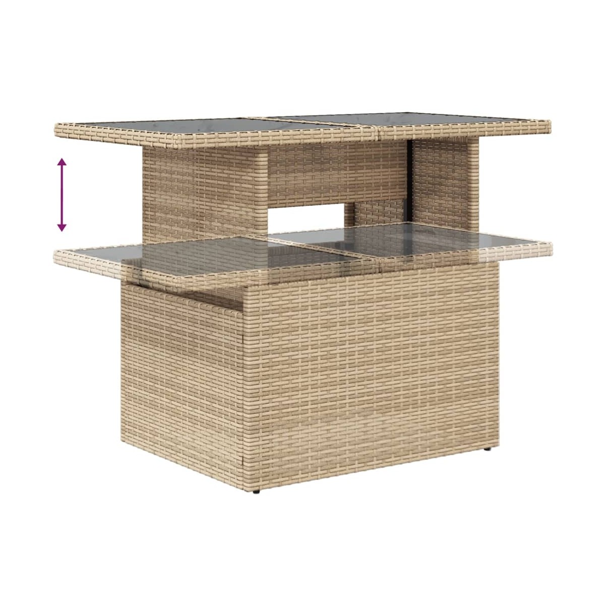 Este conjunto de sofás de jardín es el complemento perfecto para el jardín, terraza o patio, ya que proporciona un espacio confortable y acogedor para charlar con familiares y amigos o simplemente relajarte y disfrutar del aire libre. Material duradero: El ratán PE, también conocido como ratán sintético, es un material sintético resistente y de bajo mantenimiento que se parece al ratán natural. Es ligero, fácil de limpiar y se usa comúnmente para muebles de exterior debido a su durabilidad y propiedades resistentes a la intemperie.Tablero ajustable: El tablero de la mesa se puede levantar para que la mesa sea más alta, lo que transforma la mesa al aire libre de una mesa de café a una mesa de comedor. Es perfecto para invitar a invitados o comer al aire libre.Experiencia de asiento cómoda: Estos muebles de exterior, completos con cojines acolchados gruesos, ofrecen una experiencia de asiento cómoda.Funda desenfundable y lavable: Estos cojines de asiento cuentan con fundas desenfundables para facilitar el lavado y mantenimiento.Diseño modular: Este conjunto de muebles de exterior tiene un diseño modular, por lo que es completamente flexible y fácil de mover, para que puedas crear una disposición de muebles de exterior personalizada. Información útil:Para asegurarte de que tus muebles de exterior se mantengan hermosos, recomendamos protegerlos con una funda impermeable.