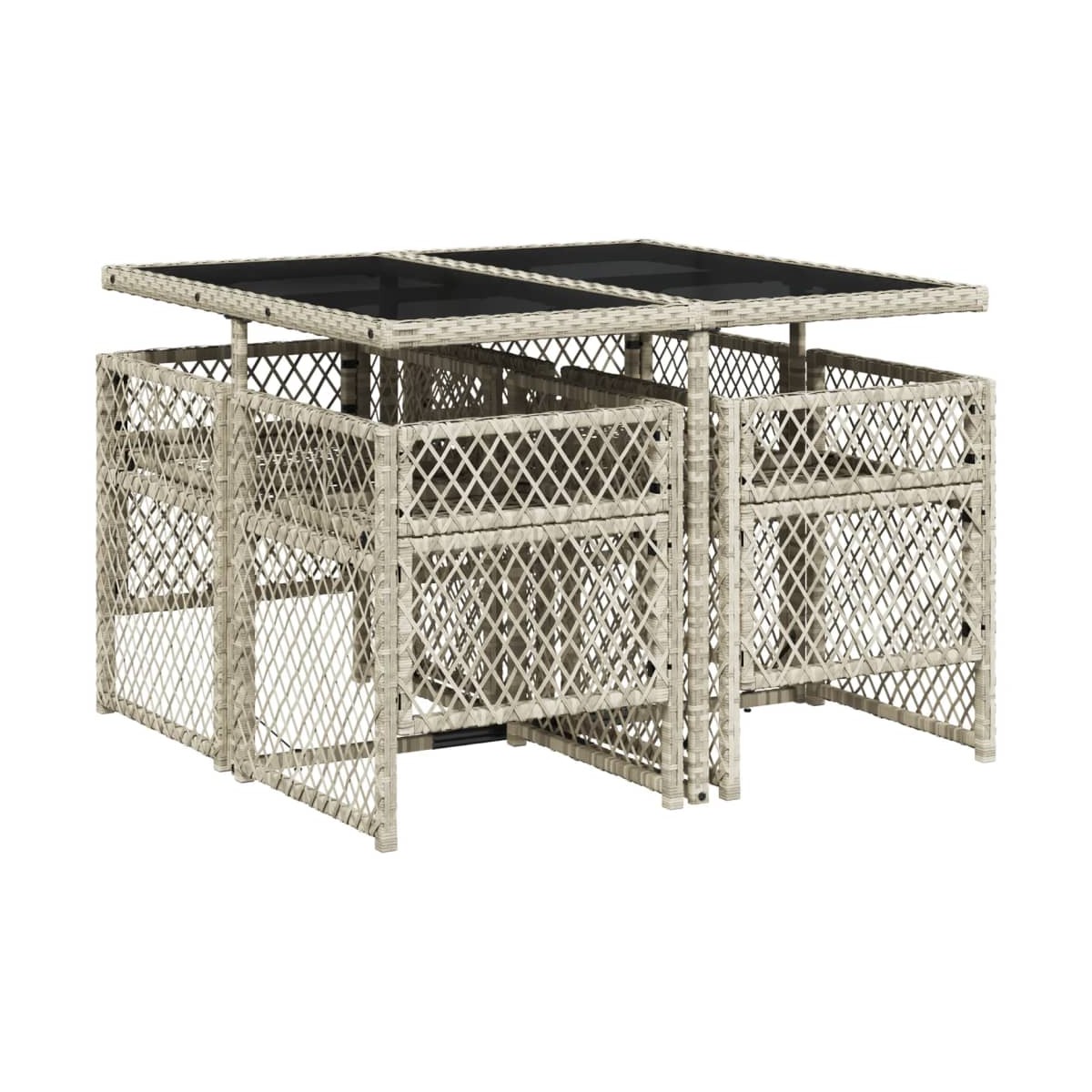 - Material: Ratán PE, acero con recubrimiento en polvo, vidrio templado