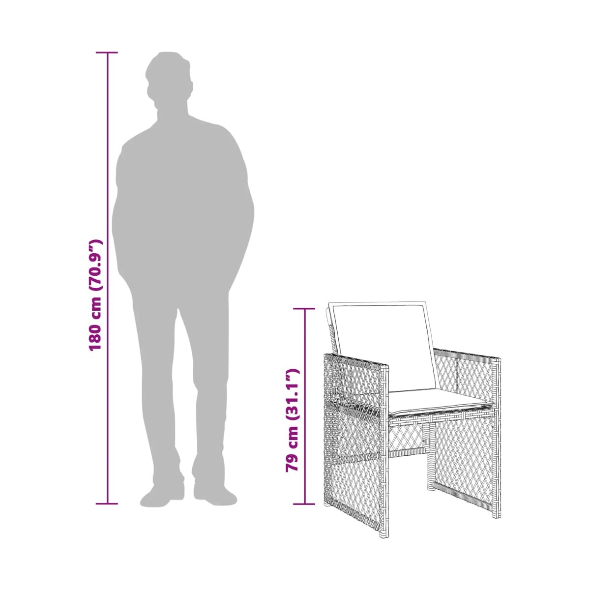 - Dimensiones de la silla de jardín: 50,5 x 54 x 79 cm (ancho x profundo x alto)