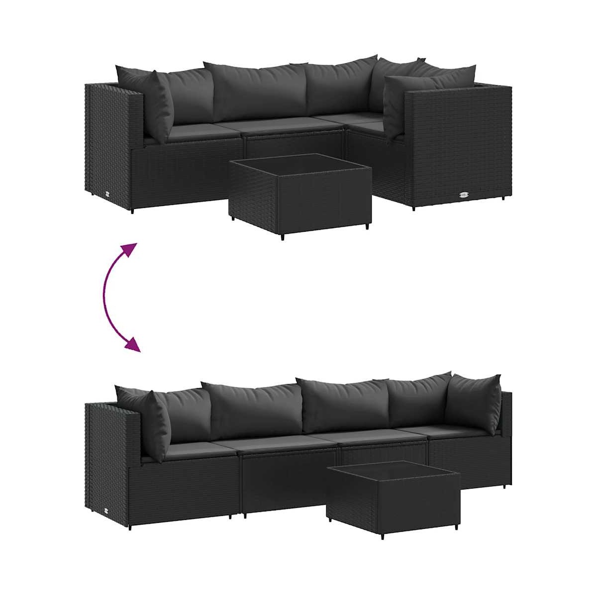 Este conjunto de sofás de jardín es el complemento perfecto para el jardín, terraza o patio, ya que proporciona un espacio confortable y acogedor para charlar con familiares y amigos o simplemente relajarte y disfrutar del aire libre. Material duradero: El ratán sintético, también conocido como ratán sintético, es un material sintético resistente y de bajo mantenimiento que se parece al ratán natural. Es ligero, fácil de limpiar y se usa comúnmente para muebles de exterior debido a su durabilidad y propiedades resistentes a la intemperie.Estructura robusta y estable: La estructura de acero con recubrimiento en polvo es fuerte, estable, duradero y resistente a la corrosión y a las inclemencias del tiempo, lo que garantiza un rendimiento duradero.Superficie de vidrio: La superficie de la mesa de exterior es de vidrio templado resistente y duradero, por lo que es fácil de limpiar con un paño húmedo y añade un toque de elegancia a tu espacio exterior.Diseño modular: Este conjunto de muebles de exterior tiene un diseño modular, por lo que es completamente flexible y fácil de mover, para que puedas crear una disposición de muebles de exterior personalizada.Experiencia de asiento cómoda: Estos muebles de exterior, completos con cojines acolchados gruesos, ofrecen una experiencia de asiento cómoda. Información útil:Para asegurarte de que tus muebles de exterior se mantengan hermosos, recomendamos protegerlos con una funda impermeable.