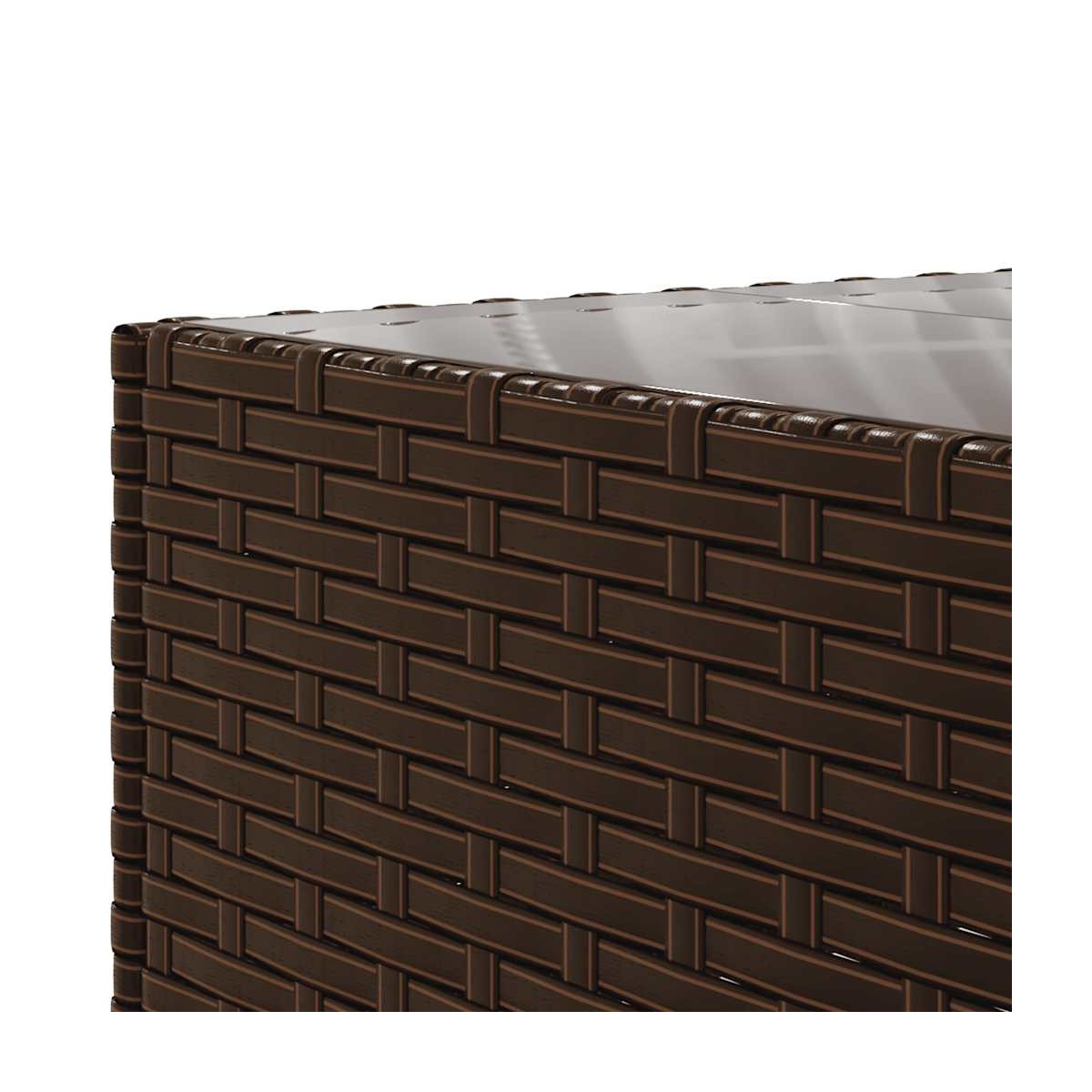 - Material: Ratán sintético, acero con recubrimiento en polvo, vidrio templado