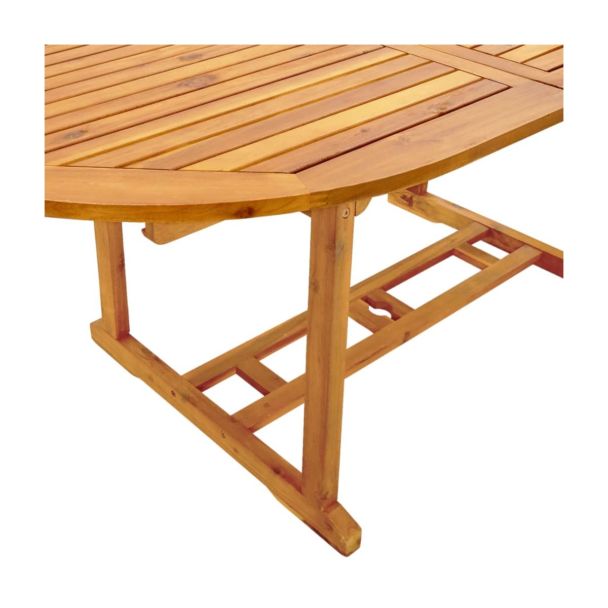 ¡Disfruta de una buena comida al aire libre con tu familia y tus amigos con este juego de comedor para jardín! Madera maciza de acacia: El juego de comedor de exterior está hecho de madera maciza de acacia. La madera maciza de acacia es un bonito material natural. La madera de acacia es una madera dura tropical, densa, robusta y duradera. Función ajustable y plegable: La silla de jardín se puede ajustar en 5 posiciones, para que siempre puedas encontrar la posición de asiento más cómoda. También se puede plegar para ahorrar espacio cuando no esté en uso. Diseño práctico: Gracias a su diseño especial, esta mesa de jardín puede ampliarse cuando se necesite más espacio. Además, en el tablero hay un orificio para sombrilla, por lo que podrás colocar fácilmente una sombrilla para crear un lugar a la sombra. Tablero resistente: Esta mesa de comedor de jardín tiene un tablero resistente. Puedes colocar tus aperitivos, bebidas y cualquiera de tus adornos favoritos. Superficie fácil de limpiar: La superficie con acabado de aceite hace que esta mesa y sillas de comedor de jardín sean fáciles de limpiar con un paño húmedo. Información útil:Para asegurarte de que tus muebles de exterior se mantengan hermosos, recomendamos protegerlos con una funda impermeable.