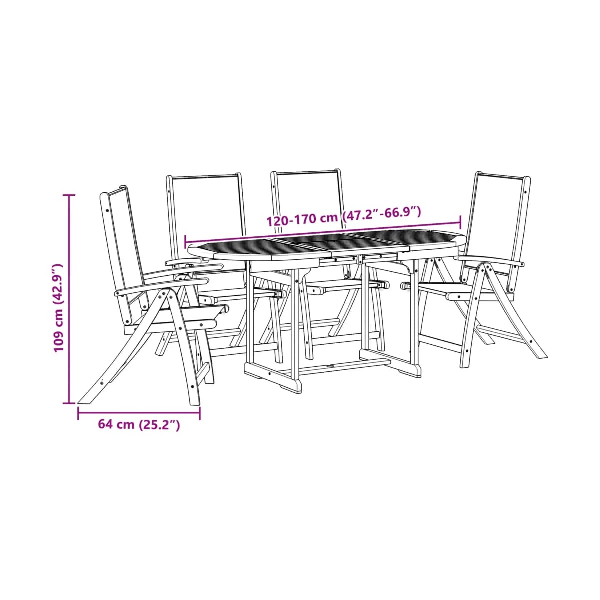 - Dimensiones: (120-170) x 80 x 75 cm (largo x ancho x alto)
