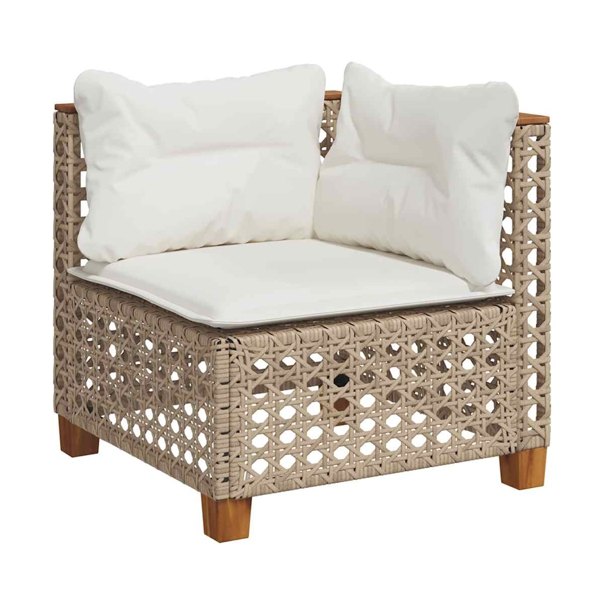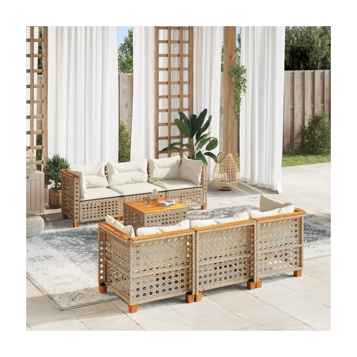 Este conjunto de sofás de jardín es el complemento perfecto para el jardín, terraza o patio, ya que proporciona un espacio confortable y acogedor para charlar con familiares y amigos o simplemente relajarte y disfrutar del aire libre. Material duradero: El ratán sintético, también conocido como ratán sintético, es un material sintético resistente y de bajo mantenimiento que se parece al ratán natural. Es ligero, fácil de limpiar y se usa comúnmente para muebles de exterior debido a su durabilidad y propiedades resistentes a la intemperie.Experiencia de asiento cómoda: Estos muebles de exterior, completos con cojines acolchados gruesos, ofrecen una experiencia de asiento cómoda.Funda desenfundable y lavable: Estos cojines de asiento cuentan con fundas desenfundables para facilitar el lavado y mantenimiento.Superficie estable y fácil de limpiar: Esta mesa de jardín tiene una superficie de madera de acacia que es resistente, duradero y fácil de limpiar con un paño húmedo.Diseño modular: Este conjunto de muebles de exterior tiene un diseño modular, por lo que es completamente flexible y fácil de mover, para que puedas crear una disposición de muebles de exterior personalizada. Información útil:Para asegurarte de que tus muebles de exterior se mantengan hermosos, recomendamos protegerlos con una funda impermeable.