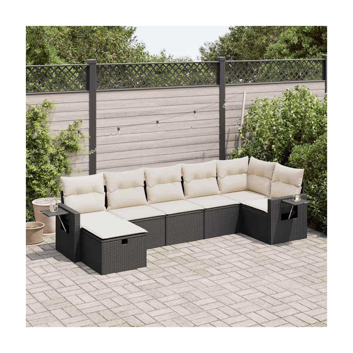 Este conjunto de sofás de jardín es el complemento perfecto para el jardín, terraza o patio, ya que proporciona un espacio confortable y acogedor para charlar con familiares y amigos o simplemente relajarte y disfrutar del aire libre. Material duradero: El ratán sintético, también conocido como ratán sintético, es un material sintético resistente y de bajo mantenimiento que se parece al ratán natural. Es ligero, fácil de limpiar y se usa comúnmente para muebles de exterior debido a su durabilidad y propiedades resistentes a la intemperie.Función de almacenamiento con bolsa resistente al agua: El mueble de jardín cuenta con espacio de almacenamiento debajo del asiento, completo con una bolsa resistente al agua para guardar cojines, juguetes y otros artículos. La bolsa interior se puede sujetar de forma segura a los muebles de exterior con cierres de gancho y bucle para mayor estabilidad.Reposapiés versátil: El taburete es versátil y sirve como un cómodo reposapiés para cuando descanses en el sofá o como asiento adicional en tu jardín.Funda desenfundable y lavable: Estos cojines de asiento cuentan con fundas desenfundables para facilitar el lavado y mantenimiento.Diseño modular: Este conjunto de muebles de exterior tiene un diseño modular, por lo que es completamente flexible y fácil de mover, para que puedas crear una disposición de muebles de exterior personalizada. Información útil:Para asegurarte de que tus muebles de exterior se mantengan hermosos, recomendamos protegerlos con una funda impermeable.