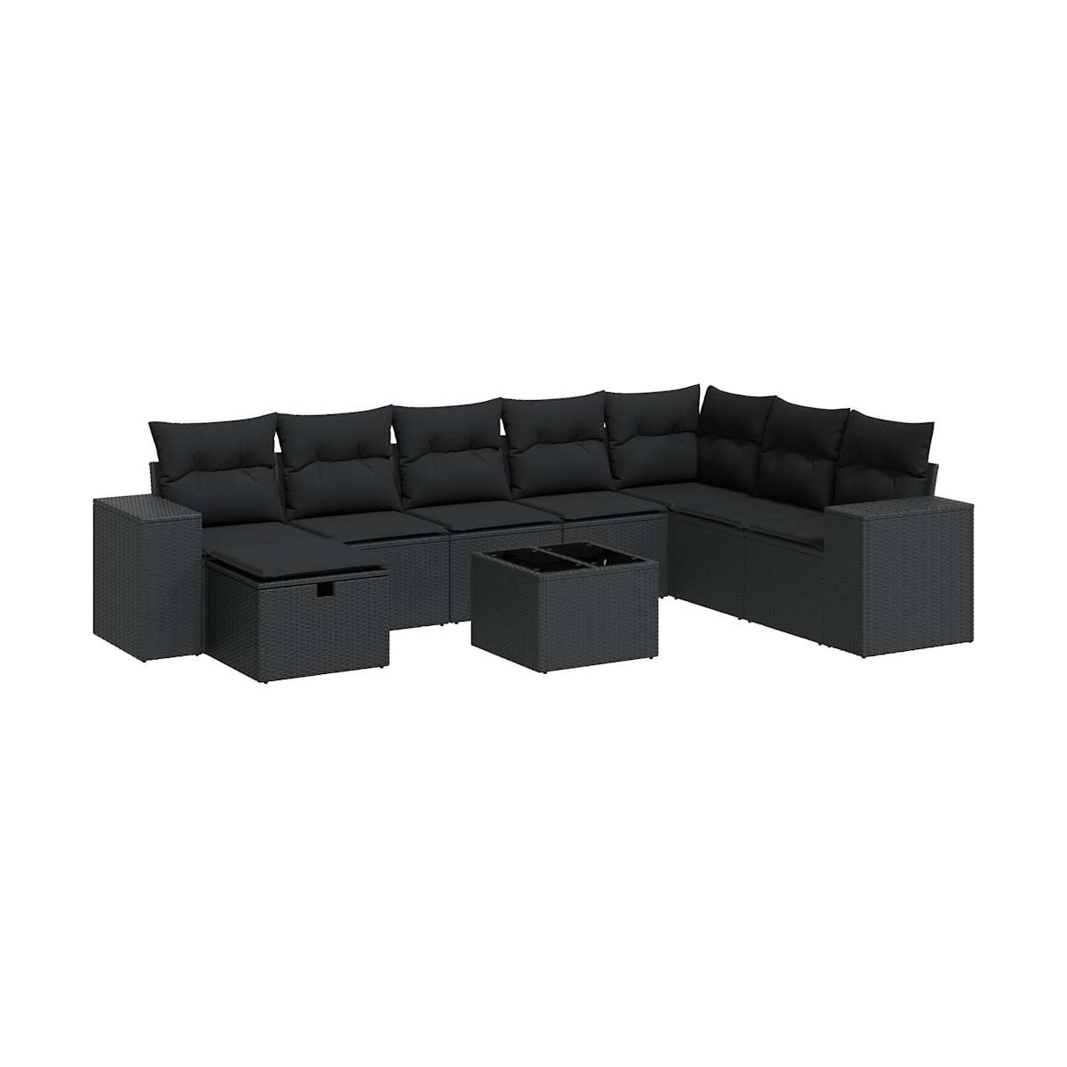 Este conjunto de sofás de jardín es el complemento perfecto para el jardín, terraza o patio, ya que proporciona un espacio confortable y acogedor para charlar con familiares y amigos o simplemente relajarte y disfrutar del aire libre. Material duradero: El ratán sintético, también conocido como ratán sintético, es un material sintético resistente y de bajo mantenimiento que se parece al ratán natural. Es ligero, fácil de limpiar y se usa comúnmente para muebles de exterior debido a su durabilidad y propiedades resistentes a la intemperie.Función de almacenamiento con bolsa resistente al agua: El mueble de jardín cuenta con espacio de almacenamiento debajo del asiento, completo con una bolsa resistente al agua para guardar cojines, juguetes y otros artículos. La bolsa interior se puede sujetar de forma segura a los muebles de exterior con cierres de gancho y bucle para mayor estabilidad.Reposapiés versátil: El taburete es versátil y sirve como un cómodo reposapiés para cuando descanses en el sofá o como asiento adicional en tu jardín.Funda desenfundable y lavable: Estos cojines de asiento cuentan con fundas desenfundables para facilitar el lavado y mantenimiento.Diseño modular: Este conjunto de muebles de exterior tiene un diseño modular, por lo que es completamente flexible y fácil de mover, para que puedas crear una disposición de muebles de exterior personalizada. Información útil:Para asegurarte de que tus muebles de exterior se mantengan hermosos, recomendamos protegerlos con una funda impermeable.