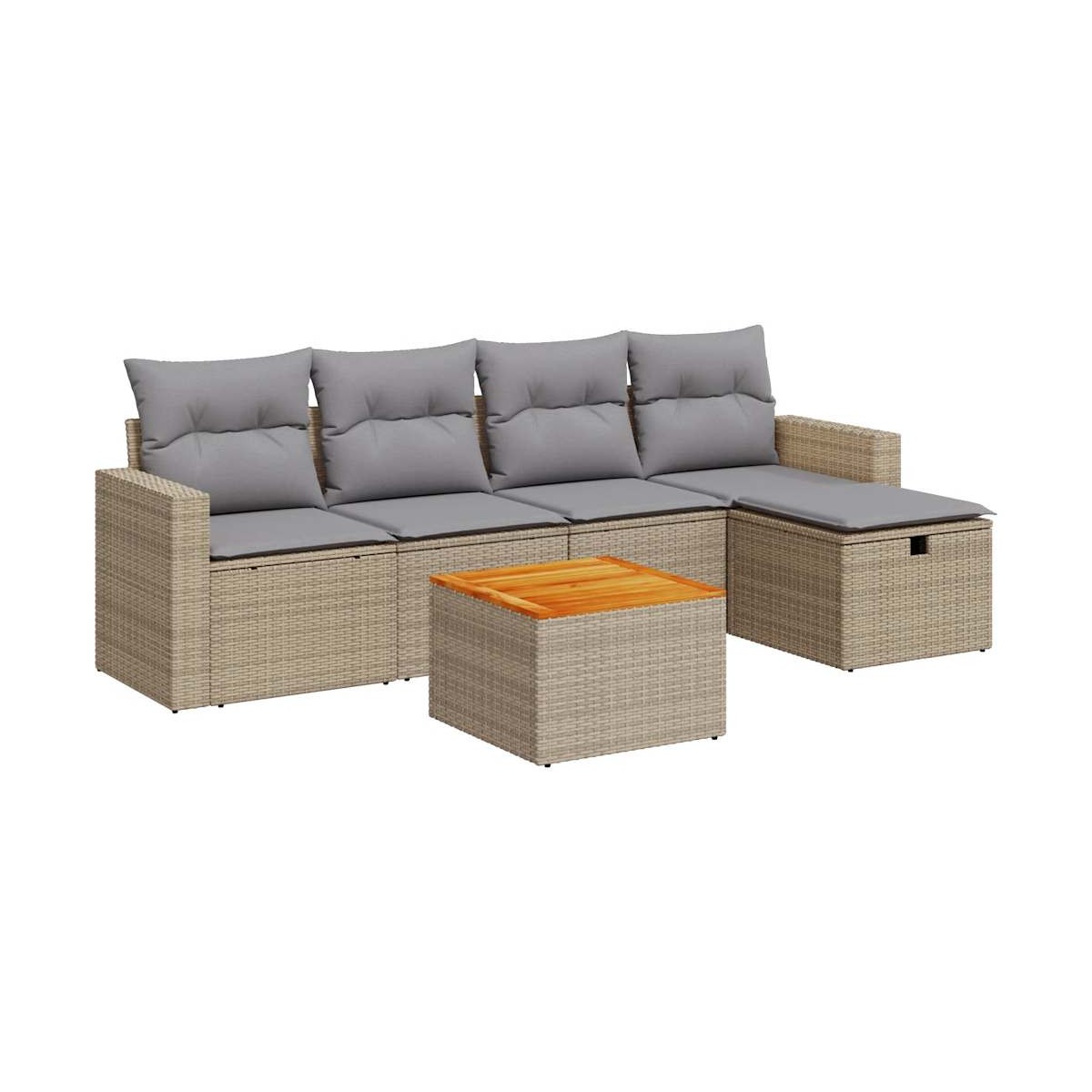 - Material: Ratán sintético, acero con recubrimiento en polvo, madera maciza de acacia con acabado de aceite