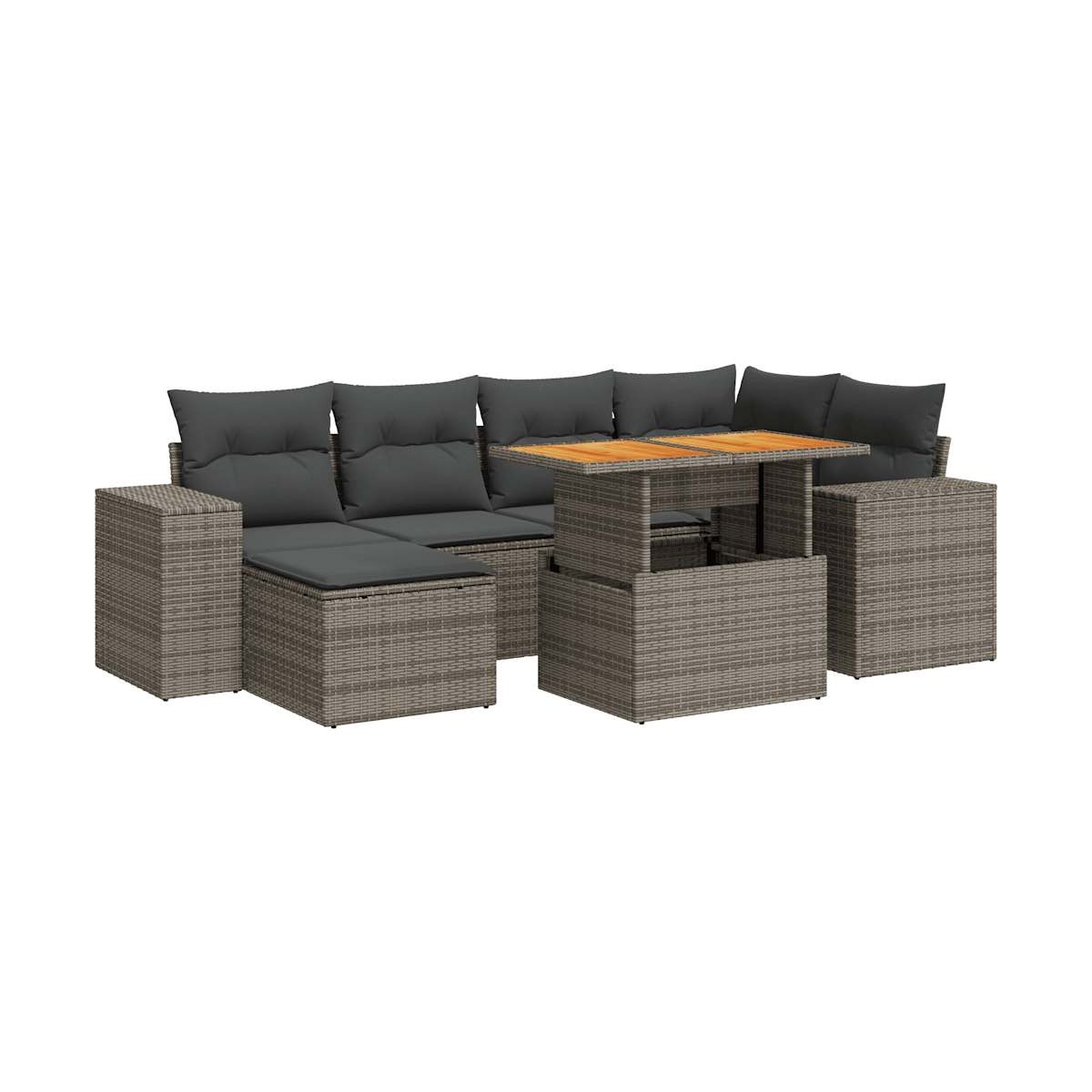 Este conjunto de sofás de jardín es el complemento perfecto para el jardín, terraza o patio, ya que proporciona un espacio confortable y acogedor para charlar con familiares y amigos o simplemente relajarte y disfrutar del aire libre. Material duradero: El ratán sintético, también conocido como ratán sintético, es un material sintético resistente y de bajo mantenimiento que se parece al ratán natural. Es ligero, fácil de limpiar y se usa comúnmente para muebles de exterior debido a su durabilidad y propiedades resistentes a la intemperie.Función de almacenamiento con bolsa resistente al agua: El mueble de jardín cuenta con espacio de almacenamiento debajo del asiento, completo con una bolsa resistente al agua para guardar cojines, juguetes y otros artículos. La bolsa interior se puede sujetar de forma segura a los muebles de exterior con cierres de gancho y bucle para mayor estabilidad.Tablero ajustable: El tablero de la mesa se puede levantar para que la mesa sea más alta, lo que transforma la mesa al aire libre de una mesa de café a una mesa de comedor. Es perfecto para invitar a invitados o comer al aire libre.Funda desenfundable y lavable: Estos cojines de asiento cuentan con fundas desenfundables para facilitar el lavado y mantenimiento.Diseño modular: Este conjunto de muebles de exterior tiene un diseño modular, por lo que es completamente flexible y fácil de mover, para que puedas crear una disposición de muebles de exterior personalizada. Información útil:Para asegurarte de que tus muebles de exterior se mantengan hermosos, recomendamos protegerlos con una funda impermeable.