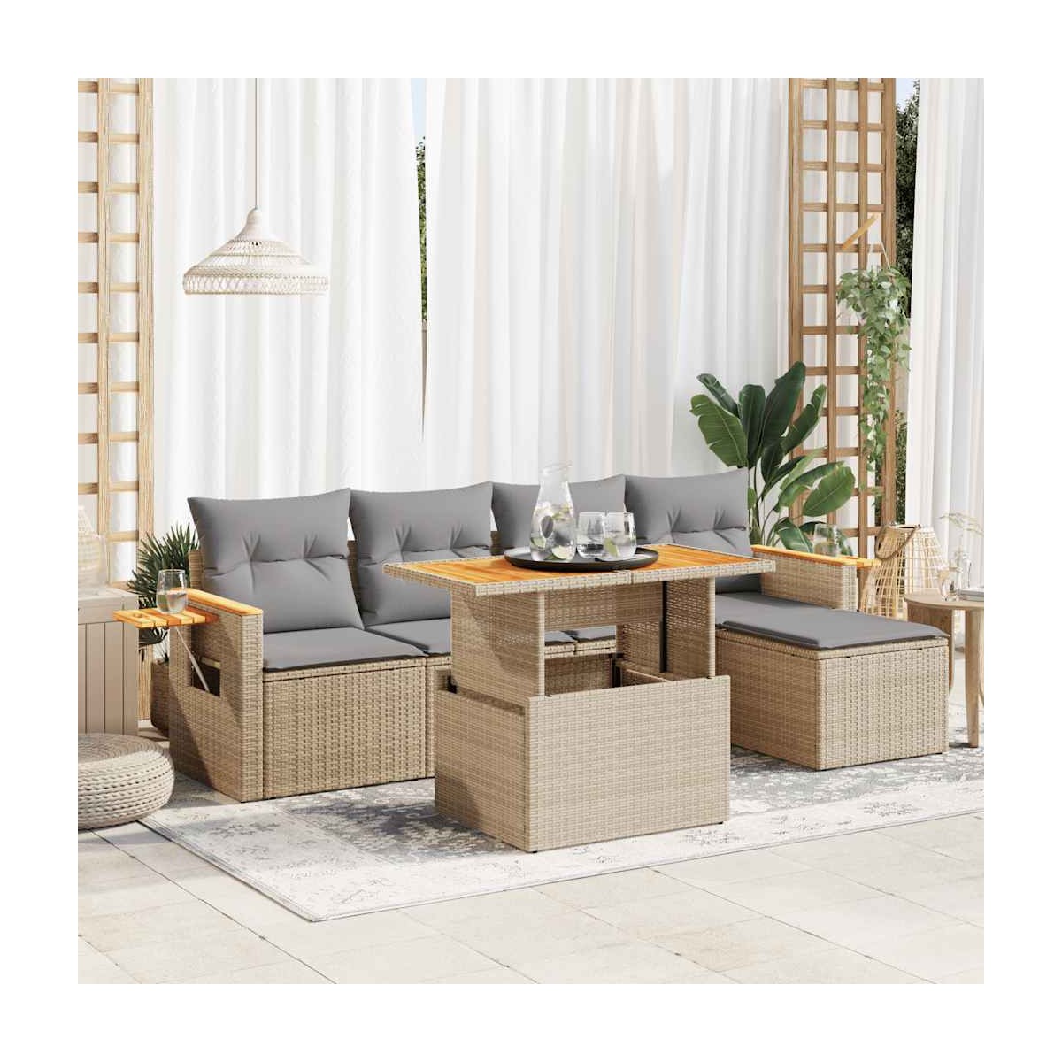 Este conjunto de sofás de jardín es el complemento perfecto para el jardín, terraza o patio, ya que proporciona un espacio confortable y acogedor para charlar con familiares y amigos o simplemente relajarte y disfrutar del aire libre.Material duradero: El ratán sintético, también conocido como ratán sintético, es un material sintético resistente y de bajo mantenimiento que se parece al ratán natural. Es ligero, fácil de limpiar y se usa comúnmente para muebles de exterior debido a su durabilidad y propiedades resistentes a la intemperie.Función de almacenamiento con bolsa resistente al agua: Cada asiento de jardín cuenta con un espacio de almacenamiento debajo del asiento, completo con una bolsa resistente al agua para guardar cojines, juguetes y otros artículos. Las bolsas interiores tienen una cubierta superior y se pueden sujetar de forma segura a los asientos con cierres de gancho y bucle para mayor estabilidad.Cómoda mesa auxiliar: Este mueble de exterior cuenta con una mesa auxiliar plegable con un muelle de gas, lo que proporciona un lugar práctico para mantener tus elementos esenciales al alcance de la mano.Funda desenfundable y lavable: Estos cojines de asiento cuentan con fundas desenfundables para facilitar el lavado y mantenimiento.Diseño modular: Este conjunto de muebles de exterior tiene un diseño modular, por lo que es completamente flexible y fácil de mover, para que puedas crear una disposición de muebles de exterior personalizada.Información útil:Para asegurarte de que tus muebles de exterior se mantengan hermosos, recomendamos protegerlos con una funda impermeable.