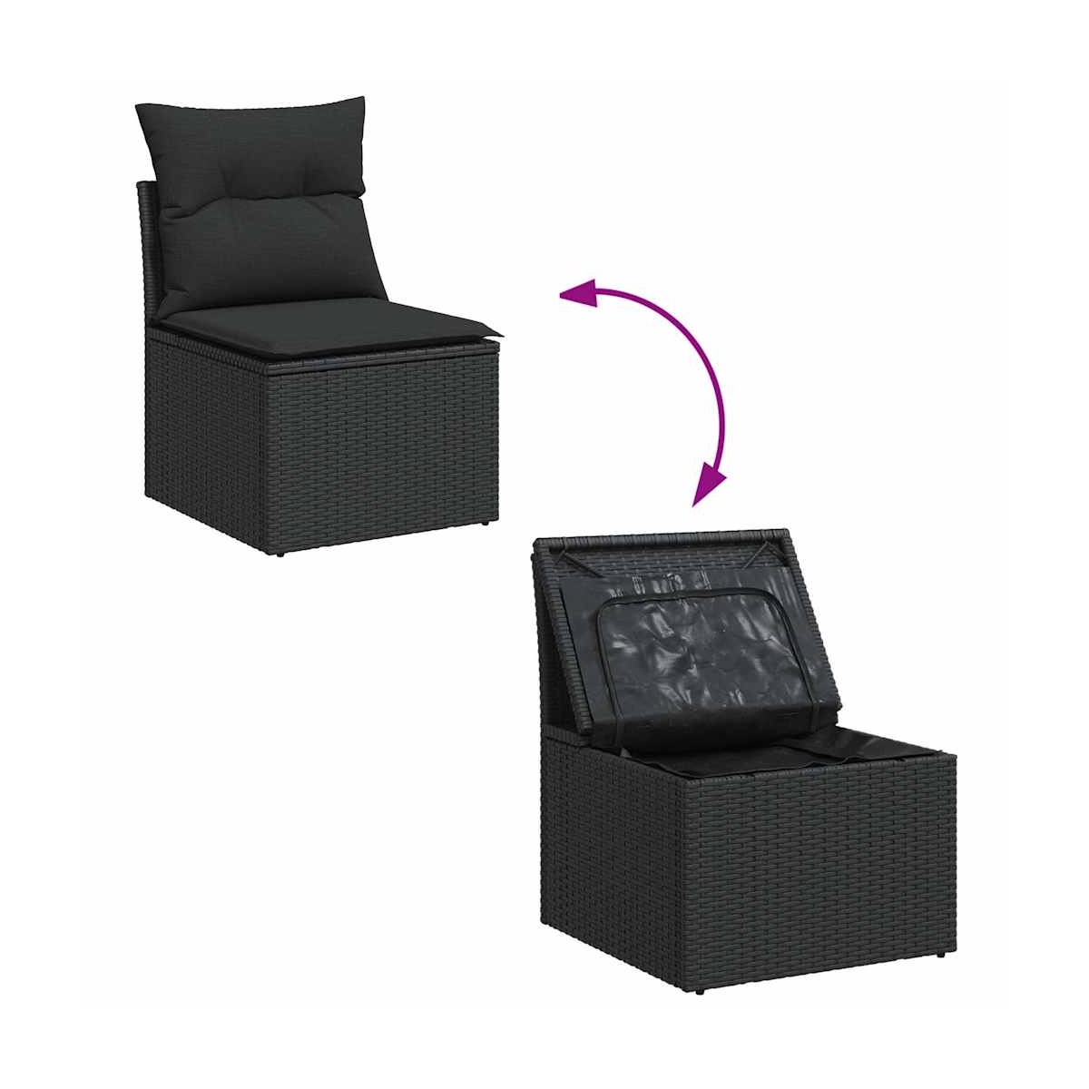 Este conjunto de sofás de jardín es el complemento perfecto para el jardín, terraza o patio, ya que proporciona un espacio confortable y acogedor para charlar con familiares y amigos o simplemente relajarte y disfrutar del aire libre.Material duradero: El ratán sintético, también conocido como ratán sintético, es un material sintético resistente y de bajo mantenimiento que se parece al ratán natural. Es ligero, fácil de limpiar y se usa comúnmente para muebles de exterior debido a su durabilidad y propiedades resistentes a la intemperie.Función de almacenamiento con bolsa resistente al agua: Cada asiento de jardín cuenta con un espacio de almacenamiento debajo del asiento, completo con una bolsa resistente al agua para guardar cojines, juguetes y otros artículos. Las bolsas interiores tienen una cubierta superior y se pueden sujetar de forma segura a los asientos con cierres de gancho y bucle para mayor estabilidad.Funda desenfundable y lavable: Estos cojines de asiento cuentan con fundas desenfundables para facilitar el lavado y mantenimiento.Diseño modular: Este conjunto de muebles de exterior tiene un diseño modular, por lo que es completamente flexible y fácil de mover, para que puedas crear una disposición de muebles de exterior personalizada.Información útil:Para asegurarte de que tus muebles de exterior se mantengan hermosos, recomendamos protegerlos con una funda impermeable.