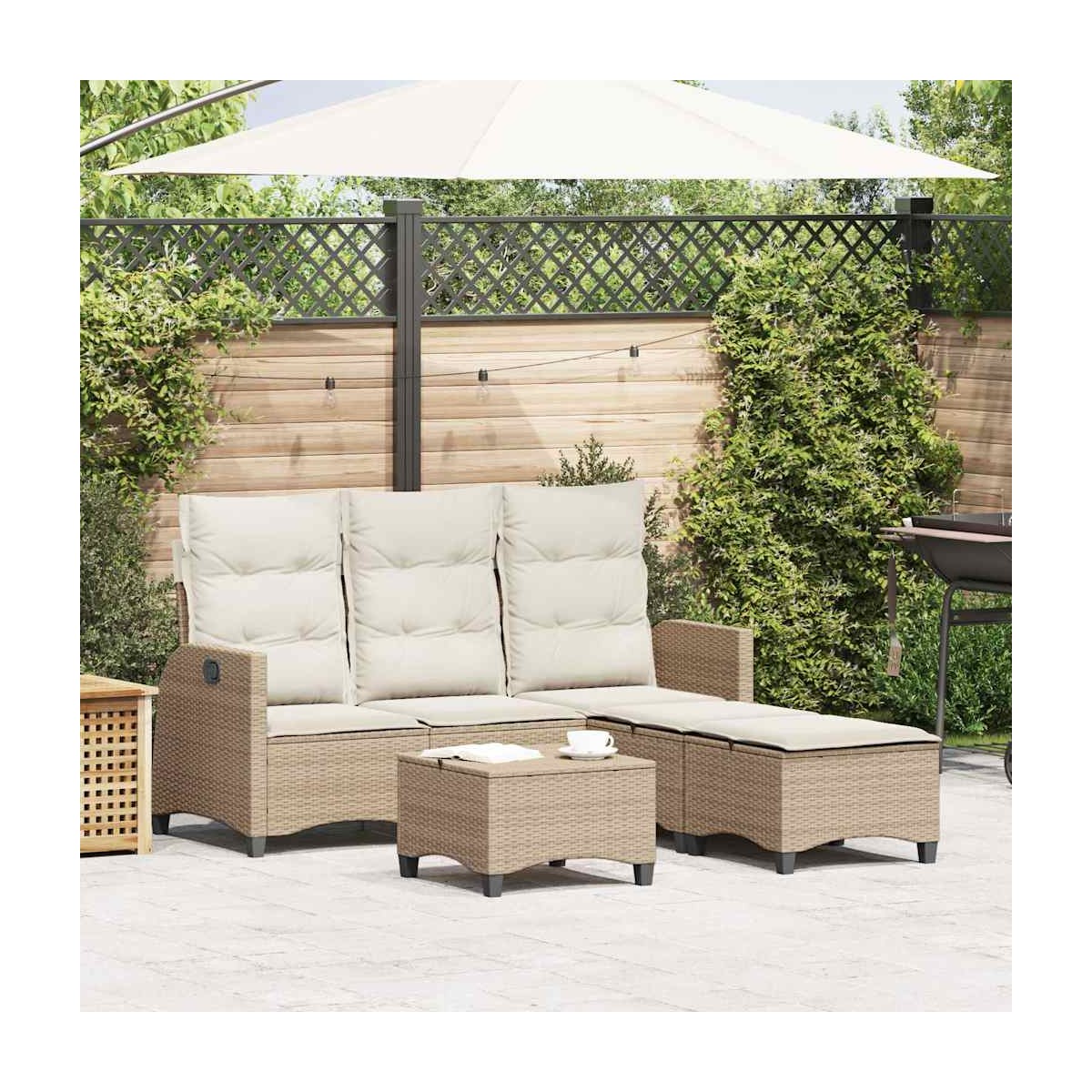 Este conjunto de sofás de jardín en forma de L es el complemento perfecto para su jardín, terraza o patio, proporcionando un espacio cómodo y acogedor para charlar con familiares y amigos o simplemente relajarse y disfrutar del aire libre. Material duradero: El ratán sintético, también conocido como ratán sintético, es un material sintético resistente y de bajo mantenimiento que se parece al ratán natural. Es ligero, fácil de limpiar y se usa comúnmente para muebles de exterior debido a su durabilidad y propiedades resistentes a la intemperie.Respaldo ajustable: Este mueble de exterior tiene un asa en cada asiento. Puedes ajustar el respaldo a cualquier posición tirando del asa y devolverlo rápidamente a su posición original.Experiencia de asiento cómoda: Estos muebles de exterior, completos con cojines acolchados gruesos, ofrecen una experiencia de asiento cómoda.Funda desenfundable y lavable: Estos cojines de asiento cuentan con fundas desenfundables para facilitar el lavado y mantenimiento.Estructura robusta y estable: La estructura de acero con recubrimiento en polvo garantiza que el mueble de jardín sea resistente y estable para usarlo a diario al aire libre. Información útil:Para asegurarte de que tus muebles de exterior se mantengan hermosos, recomendamos protegerlos con una funda impermeable.