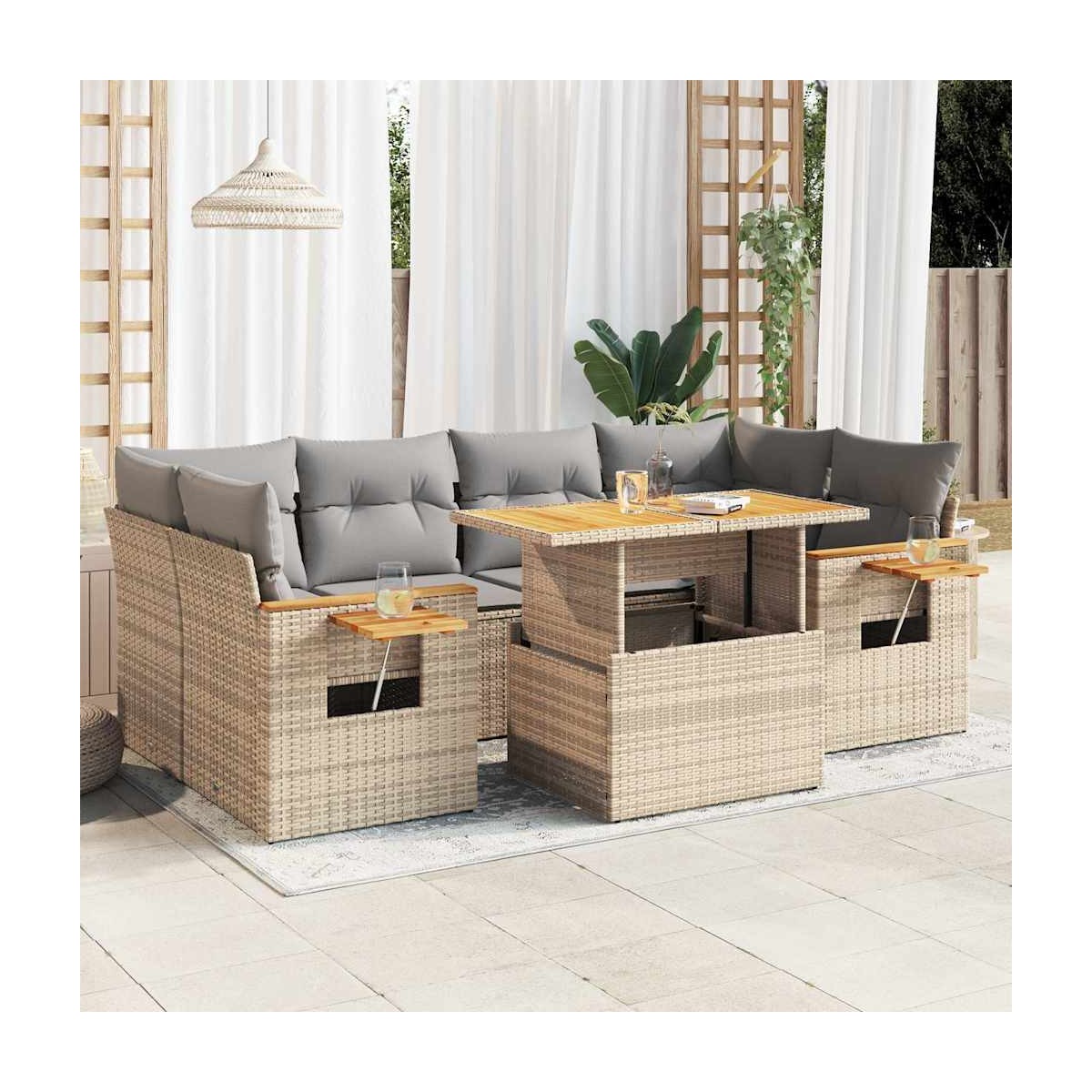 Este conjunto de sofás de jardín es el complemento perfecto para el jardín, terraza o patio, ya que proporciona un espacio confortable y acogedor para charlar con familiares y amigos o simplemente relajarte y disfrutar del aire libre.Material duradero: El ratán sintético, también conocido como ratán sintético, es un material sintético resistente y de bajo mantenimiento que se parece al ratán natural. Es ligero, fácil de limpiar y se usa comúnmente para muebles de exterior debido a su durabilidad y propiedades resistentes a la intemperie.Función de almacenamiento con bolsa resistente al agua: Cada asiento de jardín cuenta con un espacio de almacenamiento debajo del asiento, completo con una bolsa resistente al agua para guardar cojines, juguetes y otros artículos. Las bolsas interiores tienen una cubierta superior y se pueden sujetar de forma segura a los asientos con cierres de gancho y bucle para mayor estabilidad.Cómoda mesa auxiliar: Este mueble de exterior cuenta con una mesa auxiliar plegable con un muelle de gas, lo que proporciona un lugar práctico para mantener tus elementos esenciales al alcance de la mano.Funda desenfundable y lavable: Estos cojines de asiento cuentan con fundas desenfundables para facilitar el lavado y mantenimiento.Diseño modular: Este conjunto de muebles de exterior tiene un diseño modular, por lo que es completamente flexible y fácil de mover, para que puedas crear una disposición de muebles de exterior personalizada.Información útil:Para asegurarte de que tus muebles de exterior se mantengan hermosos, recomendamos protegerlos con una funda impermeable.