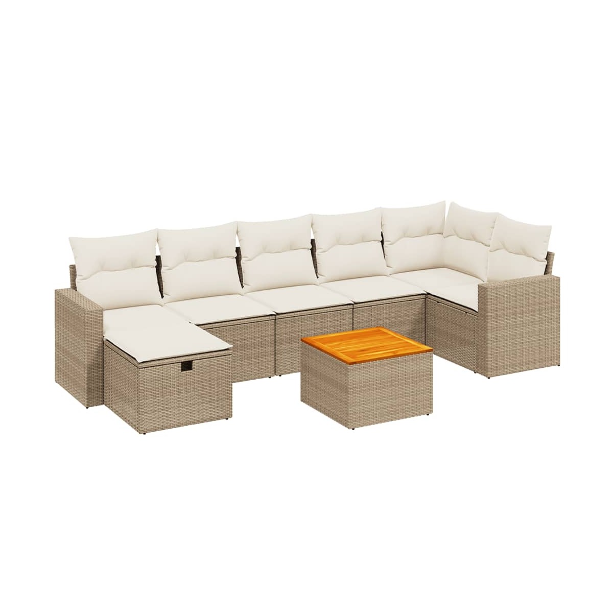 Este conjunto de sofás de jardín es el complemento perfecto para el jardín, terraza o patio, ya que proporciona un espacio confortable y acogedor para charlar con familiares y amigos o simplemente relajarte y disfrutar del aire libre. Material duradero: El ratán PE, también conocido como ratán sintético, es un material sintético resistente y de bajo mantenimiento que se parece al ratán natural. Es ligero, fácil de limpiar y se usa comúnmente para muebles de exterior debido a su durabilidad y propiedades resistentes a la intemperie.Superficie estable y fácil de limpiar: Esta mesa de jardín tiene una superficie de madera de acacia que es resistente, duradero y fácil de limpiar con un paño húmedo.Funda desenfundable y lavable: Estos cojines de asiento cuentan con fundas desenfundables para facilitar el lavado y mantenimiento.Estructura robusta y estable: La estructura de acero con recubrimiento en polvo garantiza que el mueble de jardín sea resistente y estable para usarlo a diario al aire libre.Diseño modular: Este conjunto de muebles de exterior tiene un diseño modular, por lo que es completamente flexible y fácil de mover, para que puedas crear una disposición de muebles de exterior personalizada. Información útil:Para asegurarte de que tus muebles de exterior se mantengan hermosos, recomendamos protegerlos con una funda impermeable.