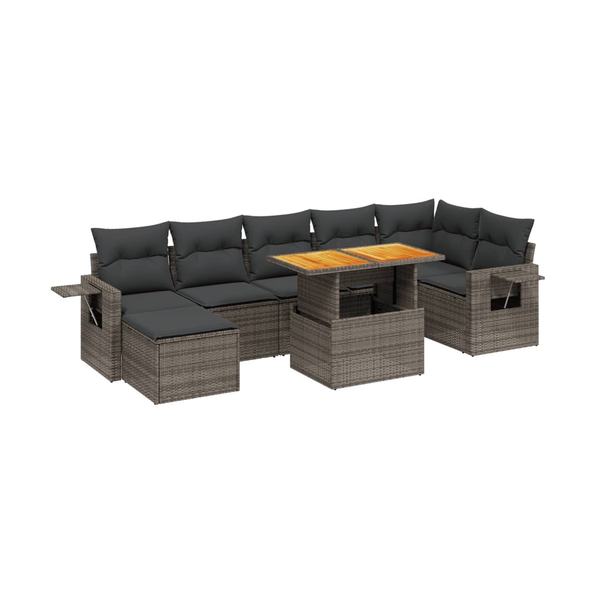 Este conjunto de sofás de jardín es el complemento perfecto para el jardín, terraza o patio, ya que proporciona un espacio confortable y acogedor para charlar con familiares y amigos o simplemente relajarte y disfrutar del aire libre. Material duradero: El ratán PE, también conocido como ratán sintético, es un material sintético resistente y de bajo mantenimiento que se parece al ratán natural. Es ligero, fácil de limpiar y se usa comúnmente para muebles de exterior debido a su durabilidad y propiedades resistentes a la intemperie.Tablero ajustable: El tablero de la mesa se puede levantar para que la mesa sea más alta, lo que transforma la mesa de jardín de una mesa de centro a una mesa de comedor. Es perfecta para invitar a invitados o comer al aire libre.Funda desenfundable y lavable: Estos cojines de asiento cuentan con fundas desenfundables para facilitar el lavado y mantenimiento.Diseño modular: Este conjunto de muebles de exterior tiene un diseño modular, por lo que es completamente flexible y fácil de mover, para que puedas crear una disposición de muebles de exterior personalizada. Información útil:Para asegurarte de que tus muebles de exterior se mantengan hermosos, recomendamos protegerlos con una funda impermeable.