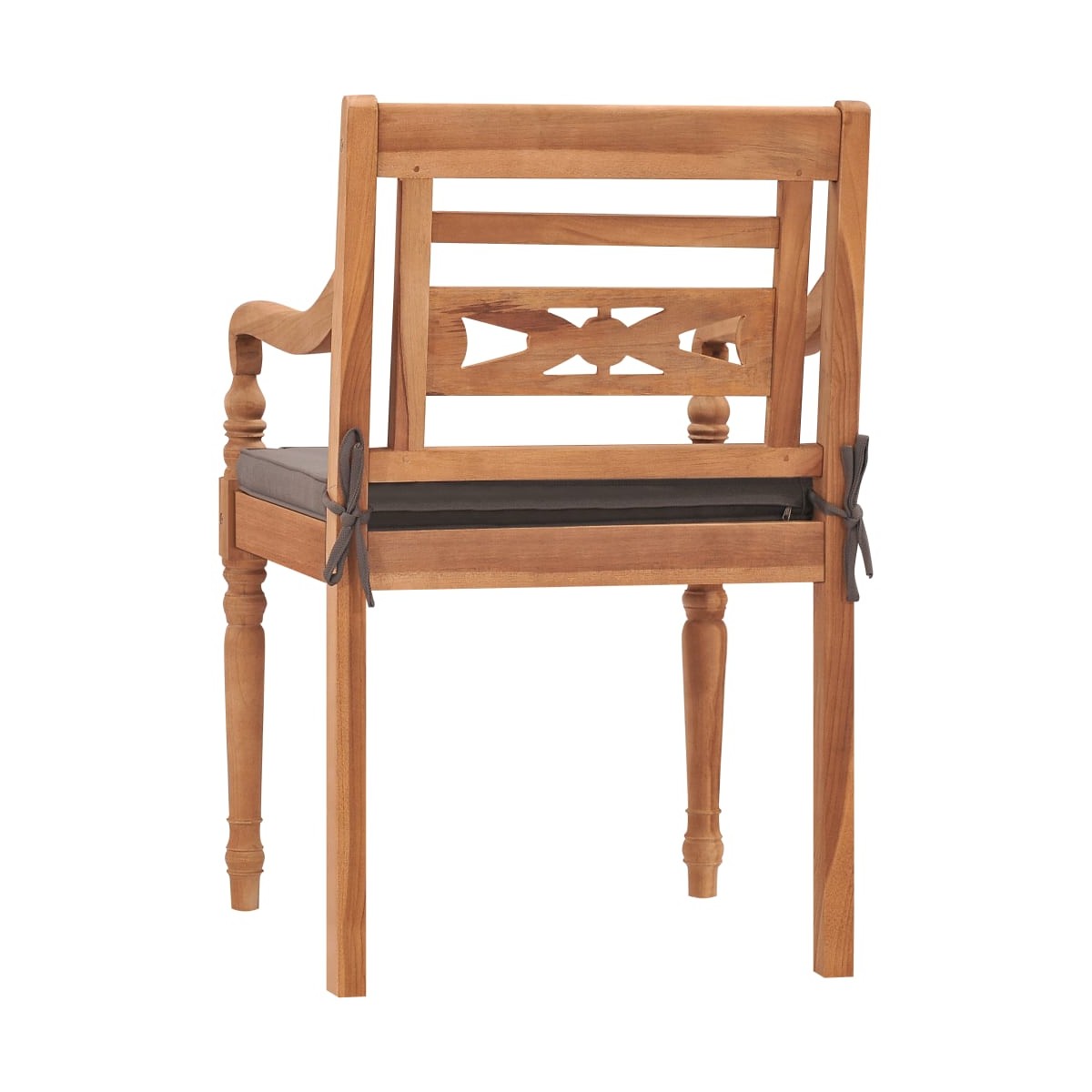 ¡Disfruta de una agradable comida o cena en el espacio al aire libre de la casa con este conjunto de comedor Batavia de madera para jardín! Con delicados reposabrazos curvados y tallas decorativas, este conjunto de muebles de jardín se convertirá en el centro de atención del jardín y patio. Material resistente: La madera maciza de teca es un bonito material natural. Ha sido curada, secada al horno y después lijada finamente para darle un aspecto muy suave. La madera de teca es conocida por su excepcional fuerza y resistencia a la intemperie.Práctica superficie: La resistente superficie de esta mesa de comedor te ofrece espacio para colocar aperitivos, fruteros, objetos decorativos y otras cosas.Diseño moderno: Este juego de comedor de bonito diseño añadirá un toque de encanto rústico al jardín y es muy adecuado para relajarse al aire libre con tus amigos y familiares.Cómodo asiento: Con los cojines de asiento acolchados, el juego de muebles resulta muy cómodo. Información útil:Para asegurarte de que tus muebles de exterior se mantengan hermosos, recomendamos protegerlos con una funda impermeable.
