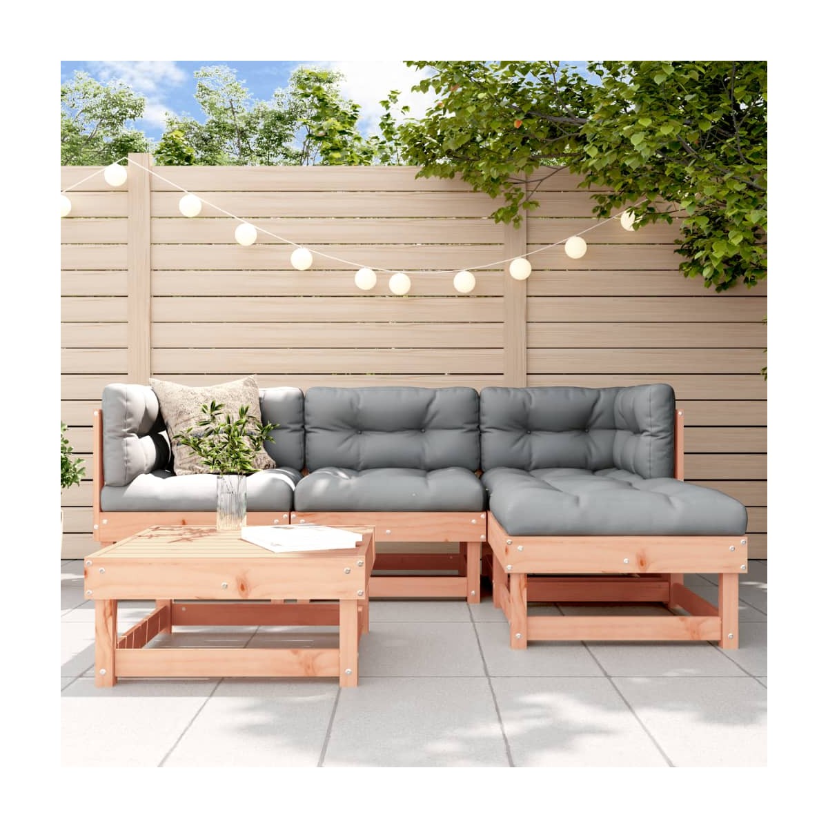 Este juego de sofás de jardín de madera, que destaca por su diseño de listones, será un gran complemento para el jardín, el patio o la terraza, para poder disfrutar de un rato agradable con la familia o los amigos. Madera maciza de abeto de Douglas: La madera maciza de abeto de Douglas es una madera muy duradera que sirve muy bien para el aire libre. La madera de abeto de Douglas también es lo bastante fuerte para trabajar con un cuidado mínimo, incluso bajo la influencia del mal tiempo.Estructura robusta y estable: Las estructuras de madera hacen que el conjunto de muebles sea robusto y estable para usar a diario al aire libre.Diseño modular: El juego de sofás es flexible y fácil de mover. Puedes combinarlo con otros segmentos modulares de la tienda web para crear tus propias configuraciones de juego de muebles de jardín. Información útil:Para asegurarte de que tus muebles de exterior se mantengan hermosos, recomendamos protegerlos con una funda impermeable.Los cojines no están incluidos en la entrega.