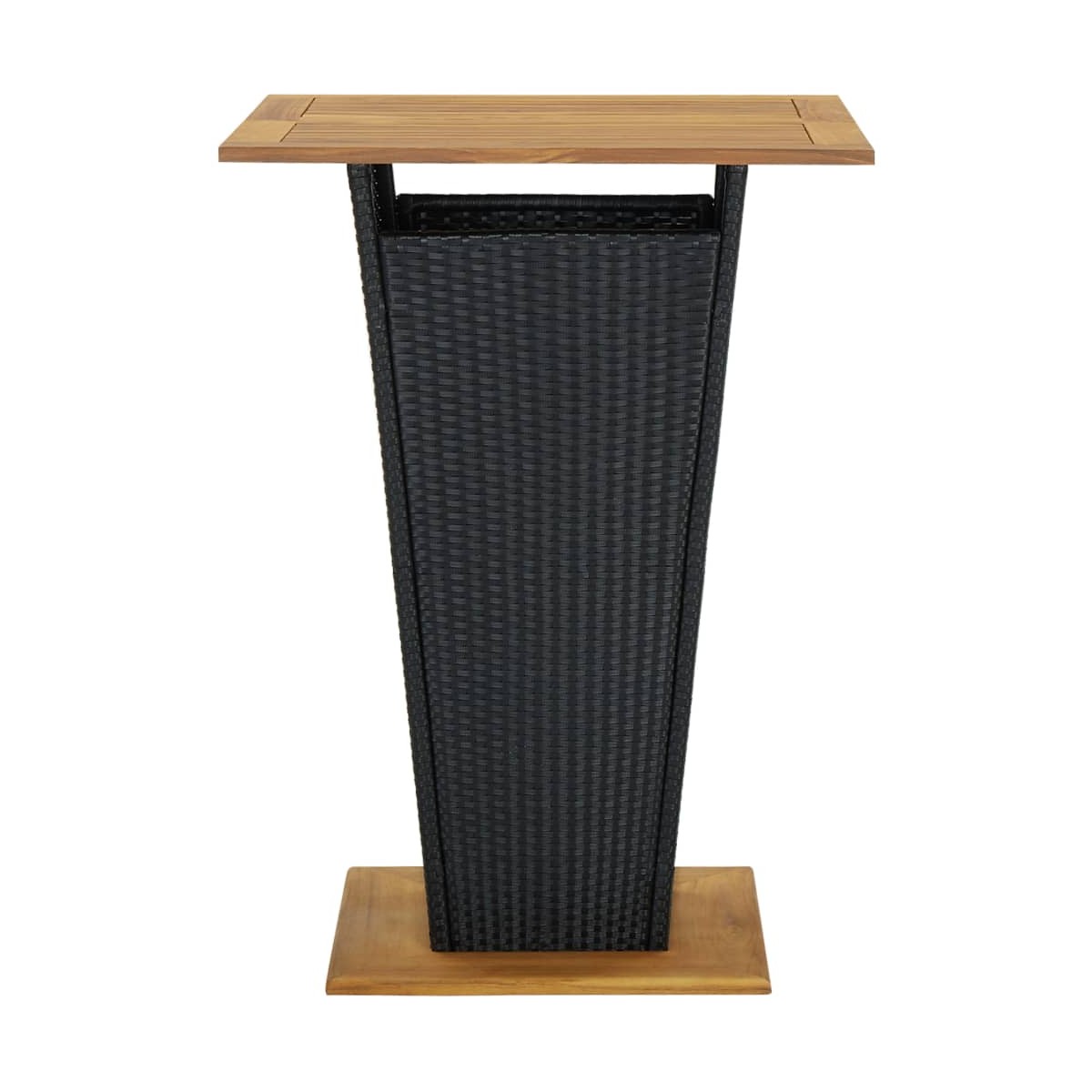 Este set de bar de jardín de ratán tiene un diseño elegante y será el centro de atención de tu jardín, patio o terraza. Con estructura de acero con recubrimiento en polvo y ratán resistente a la intemperie, este juego de mesa alta y asientos de bar garantiza años de uso en el exterior. Además, la superficie y la base de madera de acacia maciza añaden una mayor robustez y estabilidad. La superficie de madera con un diseño de listones es ideal para colocar bebidas, comida, etc. Además, los reposapiés añaden comodidad al sentarse. Gracias a la ratán PE, este juego de bar de jardín es fácil de mover. Nota: Para prolongar la vida útil de los muebles de exterior, te recomendamos que los limpies con regularidad y no los dejes al aire libre sin protección innecesariamente.Limpia: Usa una solución de jabón suaveAlmacenamiento: Si es posible, guárdalos en un lugar fresco y seco en el interior. Si el producto se almacena al aire libre, protégelo con una funda impermeable. Limpia y seca el exceso de agua o nieve de las superficies planas después de una lluvia o nevada. Permite la ventilación para evitar daños relacionados con la humedad.