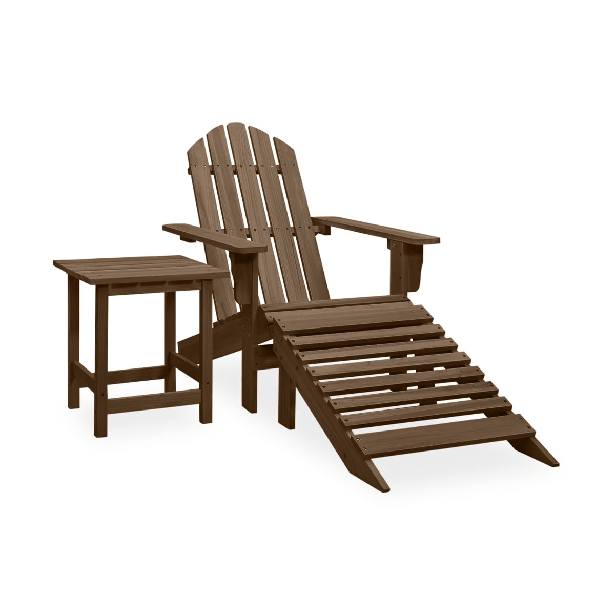¡Relájate y descansa en el jardín o en el patio con esta moderna y cómoda silla Adirondack con otomana! Esta silla de jardín con otomana y mesa, realizada en madera de abeto macizo estructura robusto y es estable, lo que la hace fácil de mantener y resistente a la intemperie. La mesa te permite colocar tu teléfono, gafas de sol, bebida y otros artículos pequeños. La estructura de diseño ergonómico también garantiza una comodidad óptima. Además, la otomana es desmontable y puede brindar apoyo adicional para tus pies. Con un diseño elegante y atemporal, será un aporte práctico y clásico para tu espacio en el exterior. Nota: Para prolongar la vida útil de los muebles de exterior, te recomendamos que los limpies con regularidad y no los dejes al aire libre sin protección innecesariamente.Limpieza: Usa una solución de jabón suave.Almacenamiento: Si es posible, guarda el producto en un lugar fresco y seco en el interior. Si el producto se almacena al aire libre, protégelo con una funda impermeable. Limpia y seca el exceso de agua o nieve de las superficies planas después de una lluvia o nevada. Permite la ventilación para evitar daños relacionados con la humedad.