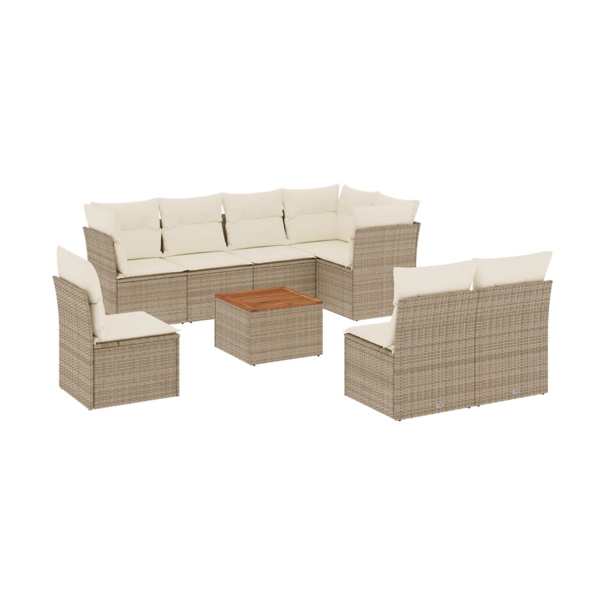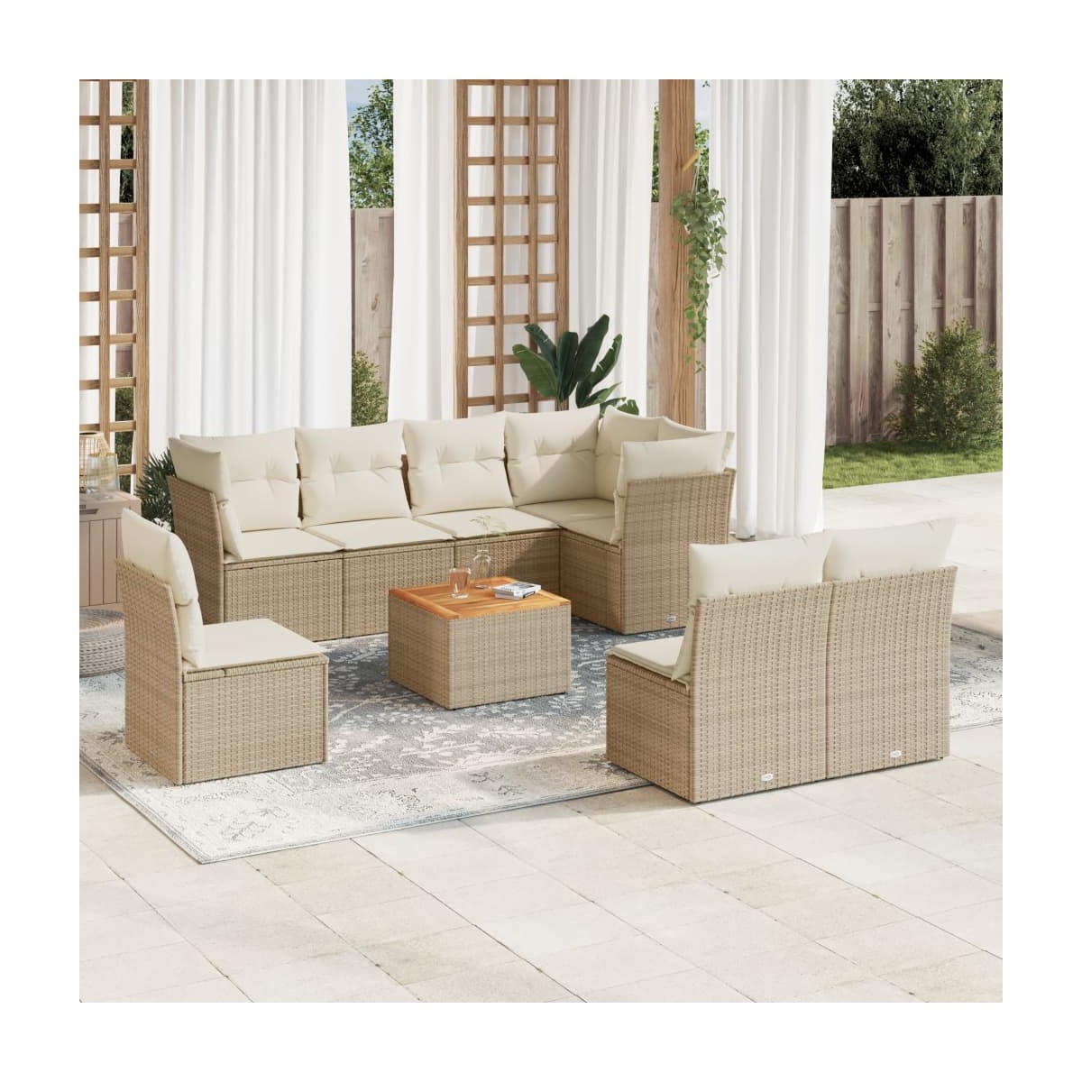 Este conjunto de sofás de jardín es el complemento perfecto para el jardín, terraza o patio, ya que proporciona un espacio confortable y acogedor para charlar con familiares y amigos o simplemente relajarte y disfrutar del aire libre. Material duradero: El ratán de PE, también conocido como ratán sintético, es un material sintético resistente y de bajo mantenimiento que se parece al ratán natural. Es ligero, fácil de limpiar y se usa comúnmente para muebles de exterior debido a su durabilidad y propiedades resistentes a la intemperie.Experiencia de asiento cómoda: Estos muebles de exterior, completos con cojines acolchados gruesos, ofrecen una experiencia de asiento cómoda.Superficie estable y fácil de limpiar: Esta mesa de jardín tiene una superficie de madera de acacia que es resistente, duradero y fácil de limpiar con un paño húmedo.Funda desenfundable y lavable: Estos cojines de asiento cuentan con fundas desenfundables para facilitar el lavado y mantenimiento.Diseño modular: Este conjunto de muebles de exterior tiene un diseño modular, por lo que es completamente flexible y fácil de mover, para que puedas crear una disposición de muebles de exterior personalizada. Información útil:Para asegurarte de que tus muebles de exterior se mantengan hermosos, recomendamos protegerlos con una funda impermeable.