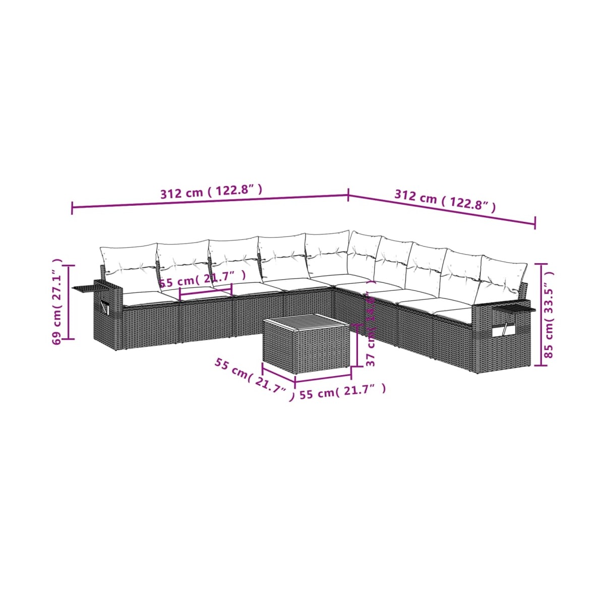 Este conjunto de sofás de jardín es el complemento perfecto para el jardín, terraza o patio, ya que proporciona un espacio confortable y acogedor para charlar con familiares y amigos o simplemente relajarte y disfrutar del aire libre. Material duradero: El ratán PE, también conocido como ratán sintético, es un material sintético resistente y de bajo mantenimiento que se parece al ratán natural. Es ligero, fácil de limpiar y se usa comúnmente para muebles de exterior debido a su durabilidad y propiedades resistentes a la intemperie.Función de almacenaje con bolsa impermeable: Cada asiento de jardín cuenta con espacio de almacenamiento debajo del asiento, completo con una bolsa resistente al agua para guardar cojines, juguetes y otros artículos. Las bolsas interiores tienen una cubierta superior y pueden fijarse firmemente a los asientos con cierres adhesivos para mayor estabilidad.Superficie estable y fácil de limpiar: Esta mesa de jardín tiene una superficie de madera de acacia que es resistente, duradero y fácil de limpiar con un paño húmedo.Práctica mesa auxiliar: Este mueble de exterior cuenta con una mesa auxiliar plegable con un resorte de gas en los reposabrazos, lo que proporciona un lugar conveniente para mantener tus elementos esenciales al alcance de la mano.Diseño modular: Este conjunto de muebles de exterior tiene un diseño modular, por lo que es completamente flexible y fácil de mover, para que puedas crear una disposición de muebles de exterior personalizada. Información útil:Para asegurarte de que tus muebles de exterior se mantengan hermosos, recomendamos protegerlos con una funda impermeable.