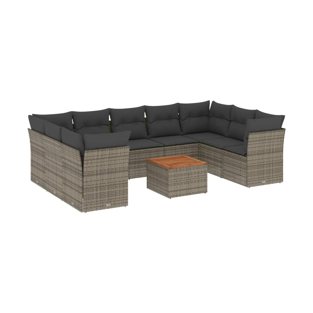 Este conjunto de sofás de jardín es el complemento perfecto para el jardín, terraza o patio, ya que proporciona un espacio confortable y acogedor para charlar con familiares y amigos o simplemente relajarte y disfrutar del aire libre. Material duradero: El ratán PE, también conocido como ratán sintético, es un material sintético resistente y de bajo mantenimiento que se parece al ratán natural. Es ligero, fácil de limpiar y se usa comúnmente para muebles de exterior debido a su durabilidad y propiedades resistentes a la intemperie.Experiencia de asiento cómoda: Estos muebles de exterior, completos con cojines acolchados gruesos, ofrecen una experiencia de asiento cómoda.Superficie estable y fácil de limpiar: Esta mesa de jardín tiene una superficie de madera de acacia que es resistente, duradero y fácil de limpiar con un paño húmedo.Funda desenfundable y lavable: Estos cojines de asiento cuentan con fundas desenfundables para facilitar el lavado y mantenimiento.Diseño modular: Este conjunto de muebles de exterior tiene un diseño modular, por lo que es completamente flexible y fácil de mover, para que puedas crear una disposición de muebles de exterior personalizada. Información útil:Para asegurarte de que tus muebles de exterior se mantengan hermosos, recomendamos protegerlos con una funda impermeable.