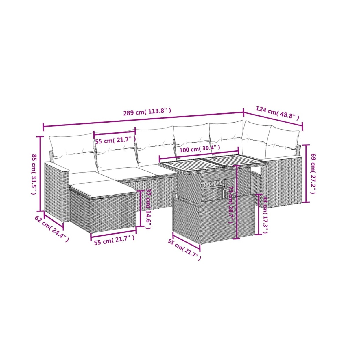 Este conjunto de sofás de jardín es el complemento perfecto para el jardín, terraza o patio, ya que proporciona un espacio confortable y acogedor para charlar con familiares y amigos o simplemente relajarte y disfrutar del aire libre. Material duradero: El ratán PE, también conocido como ratán sintético, es un material sintético resistente y de bajo mantenimiento que se parece al ratán natural. Es ligero, fácil de limpiar y se usa comúnmente para muebles de exterior debido a su durabilidad y propiedades resistentes a la intemperie.Tablero ajustable: El tablero de la mesa se puede levantar para que la mesa sea más alta, lo que transforma la mesa de jardín de una mesa de centro a una mesa de comedor. Es perfecta para invitar a invitados o comer al aire libre.Experiencia de asiento cómoda: Estos muebles de exterior, completos con cojines acolchados gruesos, ofrecen una experiencia de asiento cómoda.Funda desenfundable y lavable: Estos cojines de asiento cuentan con fundas desenfundables para facilitar el lavado y mantenimiento.Diseño modular: Este conjunto de muebles de exterior tiene un diseño modular, por lo que es completamente flexible y fácil de mover, para que puedas crear una disposición de muebles de exterior personalizada. Información útil:Para asegurarte de que tus muebles de exterior se mantengan hermosos, recomendamos protegerlos con una funda impermeable.