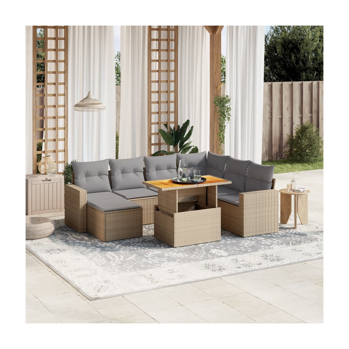Este conjunto de sofás de jardín es el complemento perfecto para el jardín, terraza o patio, ya que proporciona un espacio confortable y acogedor para charlar con familiares y amigos o simplemente relajarte y disfrutar del aire libre. Material duradero: El ratán PE, también conocido como ratán sintético, es un material sintético resistente y de bajo mantenimiento que se parece al ratán natural. Es ligero, fácil de limpiar y se usa comúnmente para muebles de exterior debido a su durabilidad y propiedades resistentes a la intemperie.Tablero ajustable: El tablero de la mesa se puede levantar para que la mesa sea más alta, lo que transforma la mesa de jardín de una mesa de centro a una mesa de comedor. Es perfecta para invitar a invitados o comer al aire libre.Funda desenfundable y lavable: Estos cojines de asiento cuentan con fundas desenfundables para facilitar el lavado y mantenimiento.Diseño modular: Este conjunto de muebles de exterior tiene un diseño modular, por lo que es completamente flexible y fácil de mover, para que puedas crear una disposición de muebles de exterior personalizada. Información útil:Para asegurarte de que tus muebles de exterior se mantengan hermosos, recomendamos protegerlos con una funda impermeable.