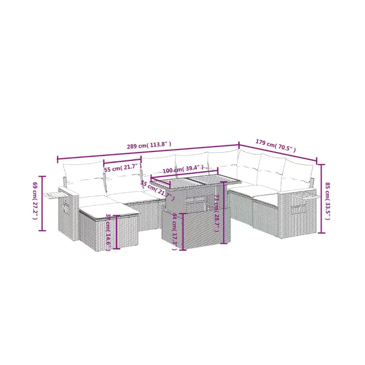 Este conjunto de sofás de jardín es el complemento perfecto para el jardín, terraza o patio, ya que proporciona un espacio confortable y acogedor para charlar con familiares y amigos o simplemente relajarte y disfrutar del aire libre. Material duradero: El ratán PE, también conocido como ratán sintético, es un material sintético resistente y de bajo mantenimiento que se parece al ratán natural. Es ligero, fácil de limpiar y se usa comúnmente para muebles de exterior debido a su durabilidad y propiedades resistentes a la intemperie.Tablero ajustable: El tablero de la mesa se puede levantar para que la mesa sea más alta, lo que transforma la mesa de jardín de una mesa de centro a una mesa de comedor. Es perfecta para invitar a invitados o comer al aire libre.Cómoda mesa auxiliar: Este mueble de exterior cuenta con una mesa auxiliar plegable con un resorte de gas en los reposabrazos, lo que proporciona un lugar conveniente para mantener tus elementos esenciales al alcance de la mano.Funda desenfundable y lavable: Estos cojines de asiento cuentan con fundas desenfundables para facilitar el lavado y mantenimiento.Diseño modular: Este conjunto de muebles de exterior tiene un diseño modular, por lo que es completamente flexible y fácil de mover, para que puedas crear una disposición de muebles de exterior personalizada. Información útil:Para asegurarte de que tus muebles de exterior se mantengan hermosos, recomendamos protegerlos con una funda impermeable.