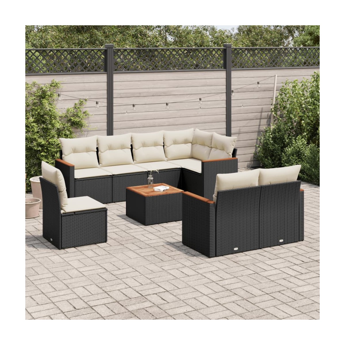 Este conjunto de sofás de jardín es el complemento perfecto para el jardín, terraza o patio, ya que proporciona un espacio confortable y acogedor para charlar con familiares y amigos o simplemente relajarte y disfrutar del aire libre. Material duradero: El ratán PE, también conocido como ratán sintético, es un material sintético resistente y de bajo mantenimiento que se parece al ratán natural. Es ligero, fácil de limpiar y se usa comúnmente para muebles de exterior debido a su durabilidad y propiedades resistentes a la intemperie.Superficie estable y fácil de limpiar: Esta mesa de jardín tiene una superficie de madera de acacia que es resistente, duradero y fácil de limpiar con un paño húmedo.Funda desenfundable y lavable: Estos cojines de asiento cuentan con fundas desenfundables para facilitar el lavado y mantenimiento.Estructura robusta y estable: La estructura de acero con recubrimiento en polvo garantiza que el mueble de jardín sea resistente y estable para usarlo a diario al aire libre.Diseño modular: Este conjunto de muebles de exterior tiene un diseño modular, por lo que es completamente flexible y fácil de mover, para que puedas crear una disposición de muebles de exterior personalizada. Información útil:Para asegurarte de que tus muebles de exterior se mantengan hermosos, recomendamos protegerlos con una funda impermeable.