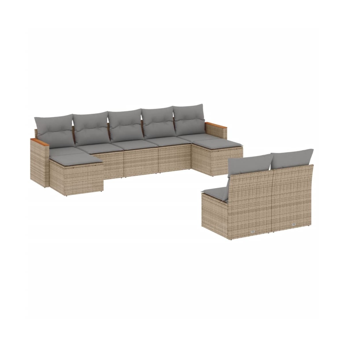 Este conjunto de sofás de jardín es el complemento perfecto para el jardín, terraza o patio, ya que proporciona un espacio confortable y acogedor para charlar con familiares y amigos o simplemente relajarte y disfrutar del aire libre. Material duradero: El ratán PE, también conocido como ratán sintético, es un material sintético resistente y de bajo mantenimiento que se parece al ratán natural. Es ligero, fácil de limpiar y se usa comúnmente para muebles de exterior debido a su durabilidad y propiedades resistentes a la intemperie.Funda desenfundable y lavable: Estos cojines de asiento cuentan con fundas desenfundables para facilitar el lavado y mantenimiento.Estructura robusta y estable: La estructura de acero con recubrimiento en polvo garantiza que el mueble de jardín sea resistente y estable para usarlo a diario al aire libre.Diseño modular: Este conjunto de muebles de exterior tiene un diseño modular, por lo que es completamente flexible y fácil de mover, para que puedas crear una disposición de muebles de exterior personalizada. Información útil:Para asegurarte de que tus muebles de exterior se mantengan hermosos, recomendamos protegerlos con una funda impermeable.