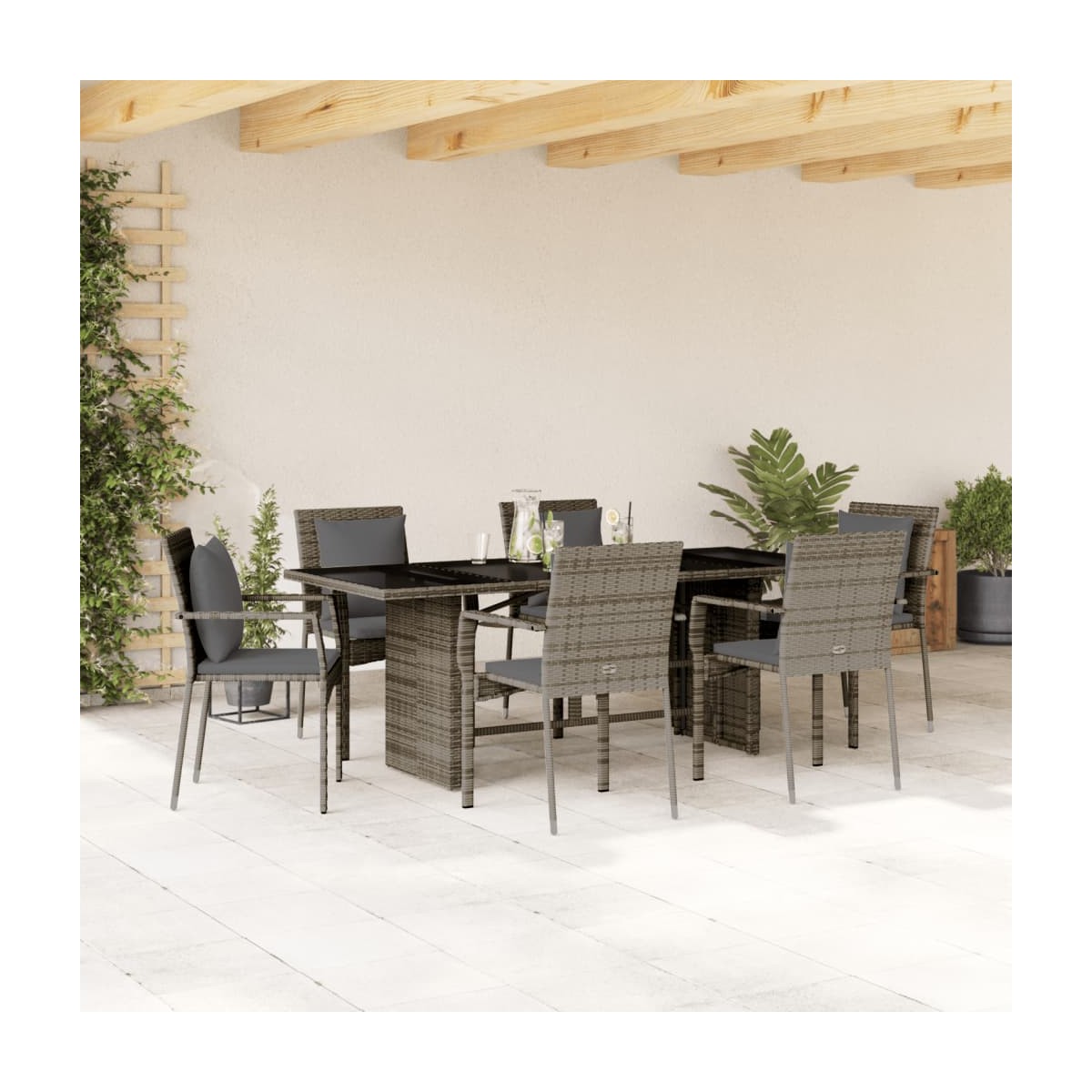 Este juego de comedor de jardín es una gran elección para comer al aire libre o simplemente para relajarte en el jardín, el patio o la terraza. Material duradero: El ratán PE, también conocido como ratán sintético, es un material sintético resistente y de bajo mantenimiento que se parece al ratán natural. Es ligero, fácil de limpiar y se usa comúnmente para muebles de exterior debido a su durabilidad y propiedades resistentes a la intemperie. Superficie de vidrio: La superficie de la mesa de exterior es de vidrio templado resistente y duradero, por lo que es fácil de limpiar con un paño húmedo y añade un toque de elegancia a tu espacio exterior. Experiencia de asiento cómoda: Estos muebles de exterior, completos con cojines acolchados gruesos, ofrecen una experiencia de asiento cómoda. Funda desenfundable y lavable: Estos cojines de asiento cuentan con fundas desenfundables para facilitar el lavado y mantenimiento. Estructura robusta y estable: La estructura de acero con recubrimiento en polvo garantiza que el mueble de jardín sea resistente y estable para usarlo a diario al aire libre. Información útil:Para asegurarte de que tus muebles de exterior se mantengan hermosos, recomendamos protegerlos con una funda impermeable.